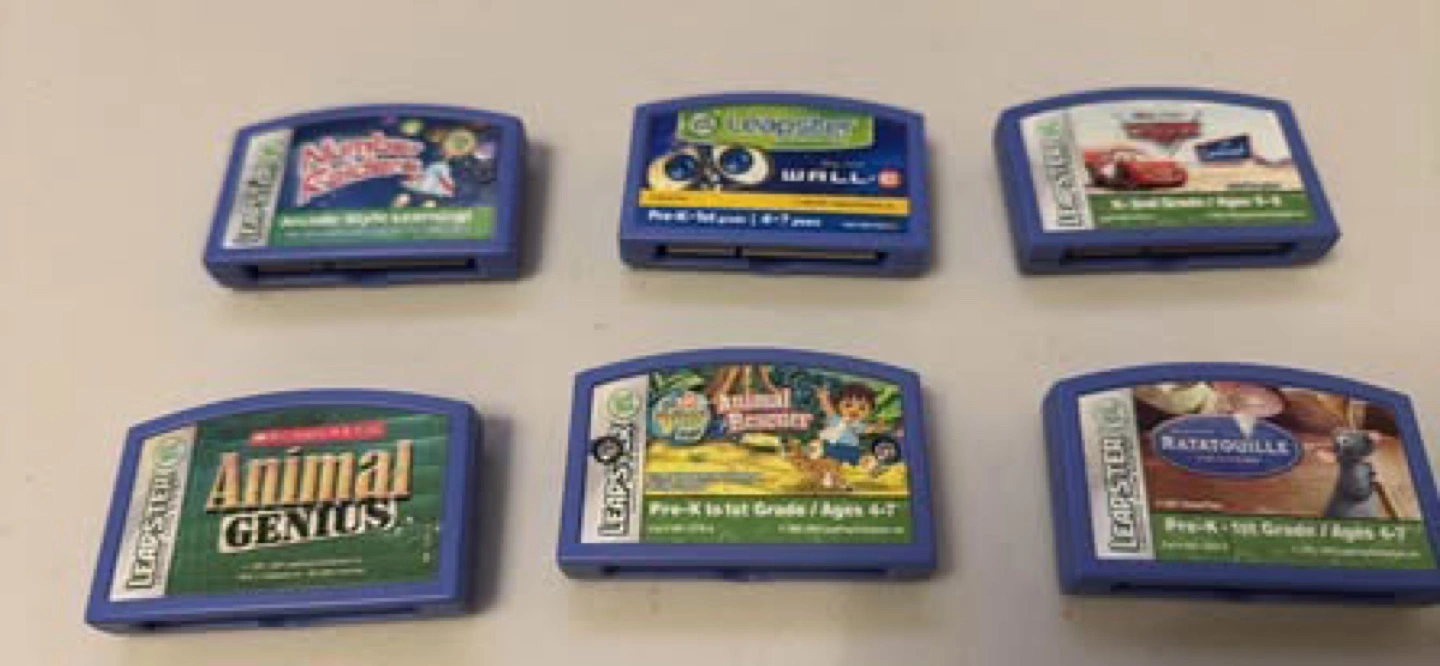 Six Leapster Explorer games. Titles include: Animal Genius, Animal Rescue, Cars, Wall-E, and Ratatouille. Pre-K to 1st grade. Smoke free pet free Pick up only. Closed to Fairview mall in Kitchener Only serious inquiries Cash only low ballers will be ignored
