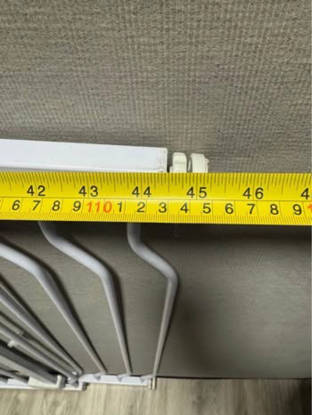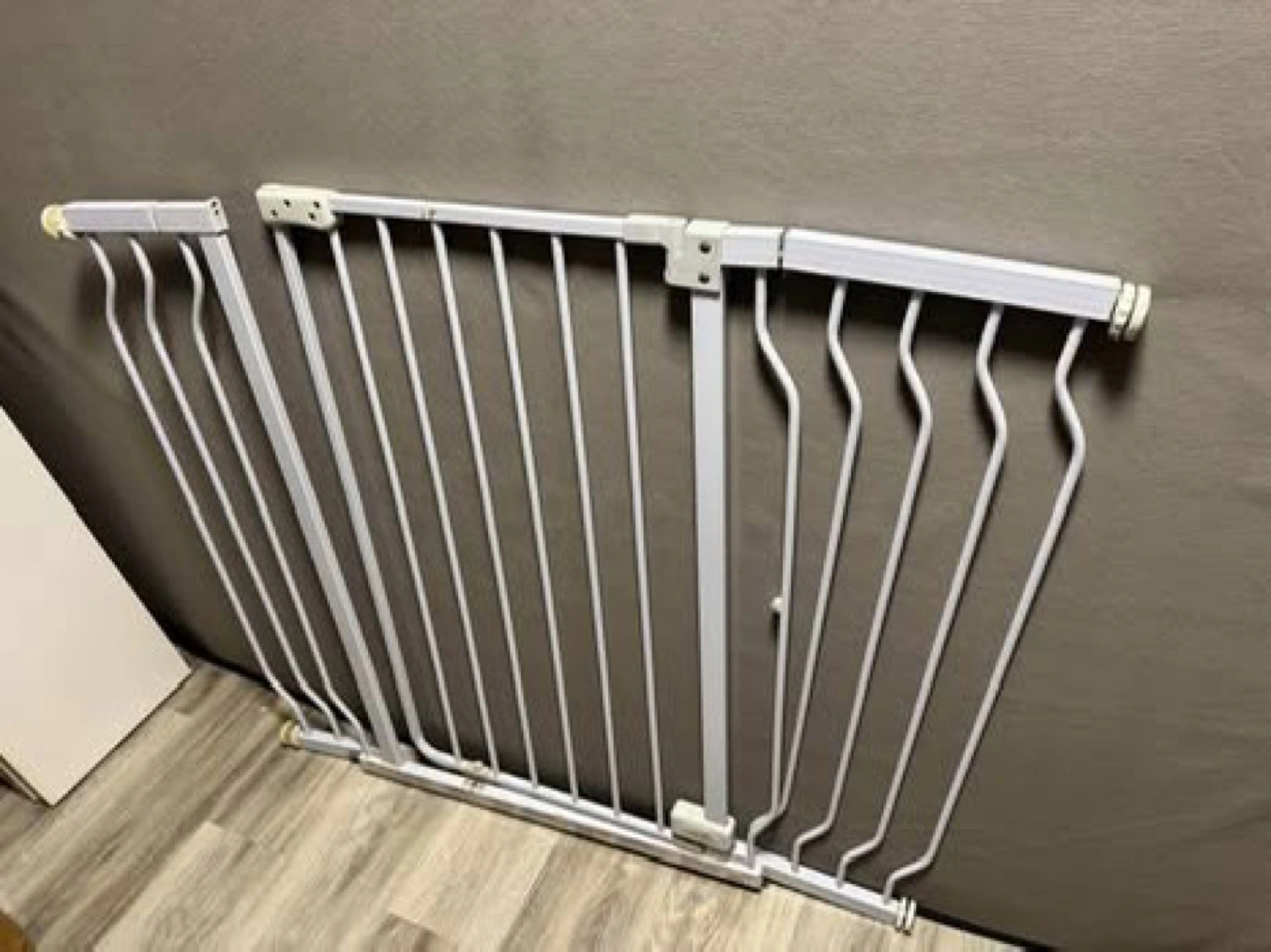 Pressure mounted safety gate. White metal frame. Approximately 43 inches wide when fully extended. Good condition. Smoke free pet free Pick up only. Closed to Fairview mall in Kitchener Only serious inquiries Cash only low ballers will be ignored