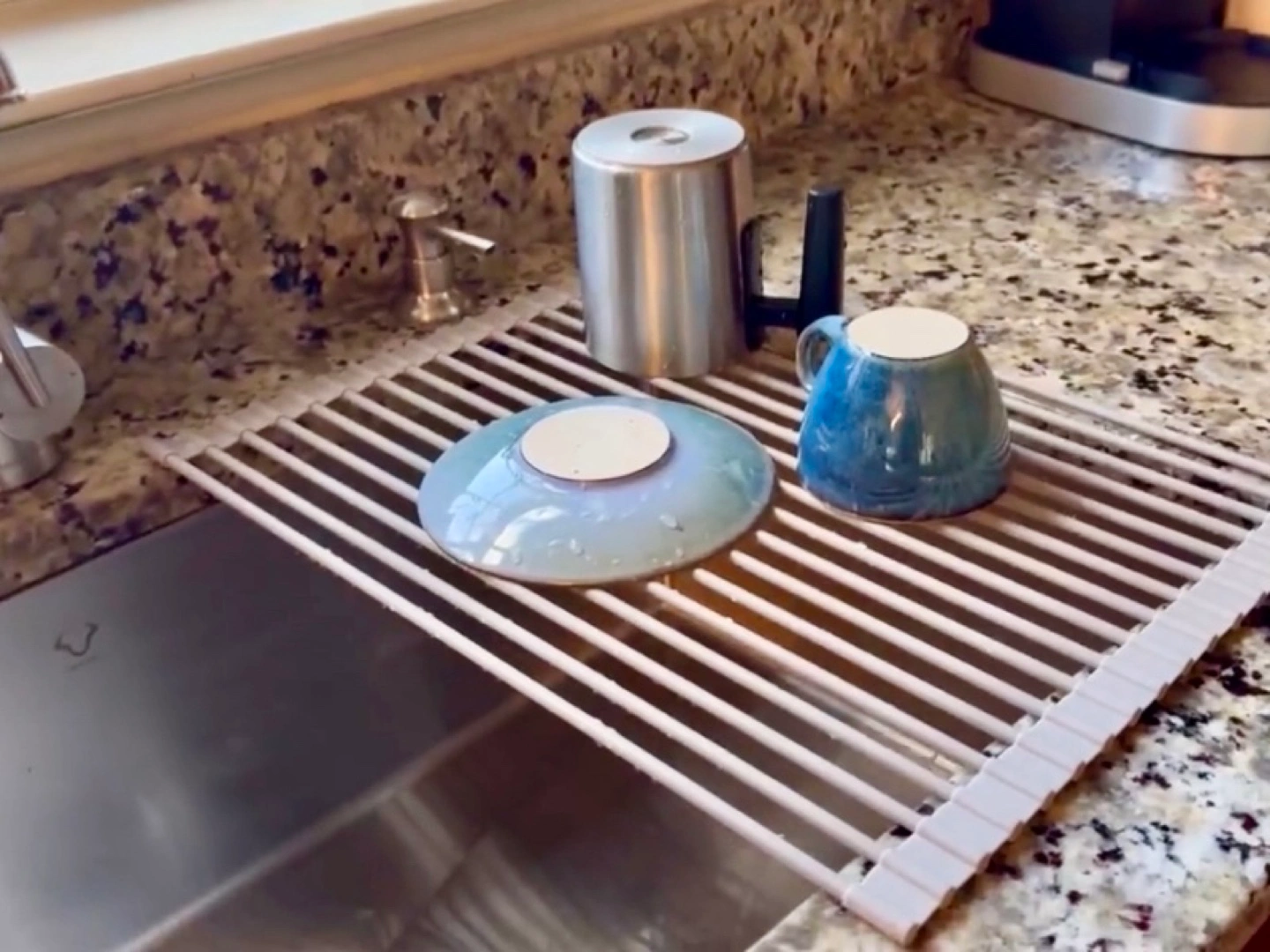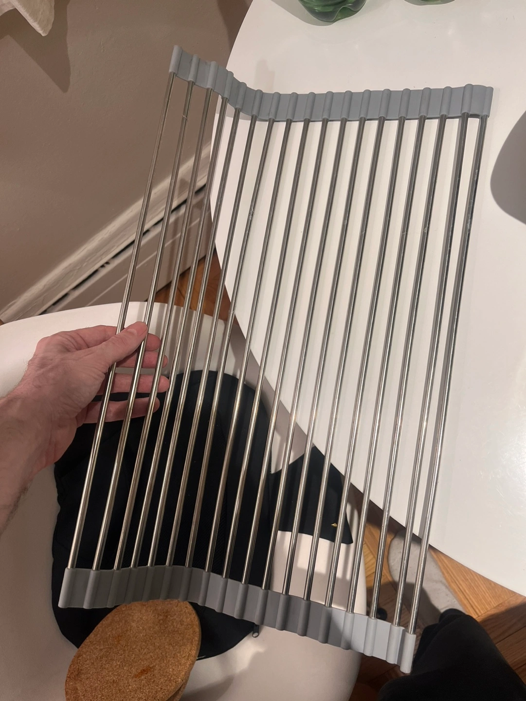 Pickup midtown. Delivery to door in area. Compact and convenient roll-up dish drying rack. Space-saving design. Stainless steel construction with grey silicone edging. Perfect for small kitchens or apartments. Regular price 24.99 +tax Mashing washed and sanitized. Pickup close to Davisville subway station, 6min walk.