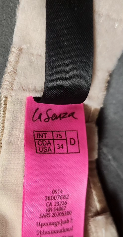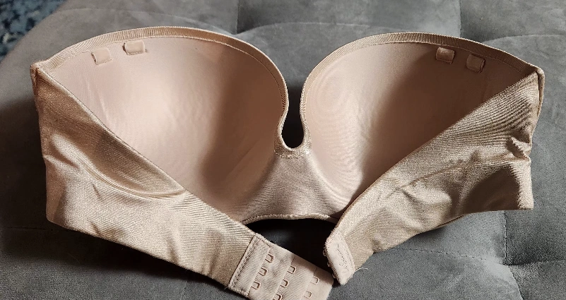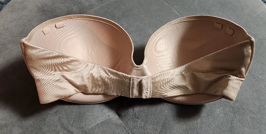 La Senza Body Kiss strapless bra. Size 34D. Beige colour. Features silicone grips for secure fit. Excellent support. Like new condition.