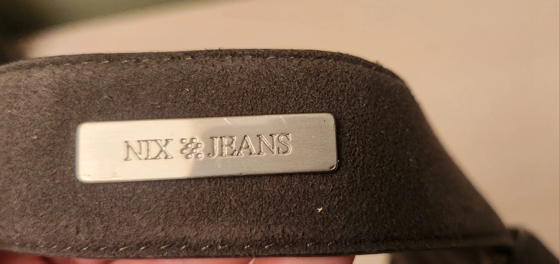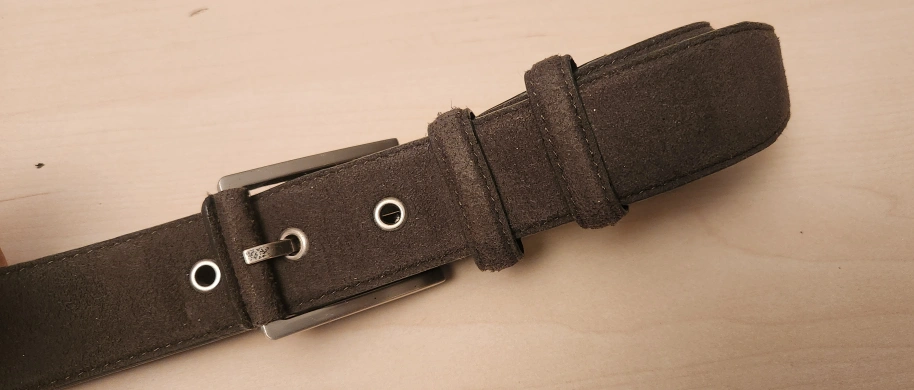Dark brown suede belt. Metal buckle. Good condition. Size: Unspecified.