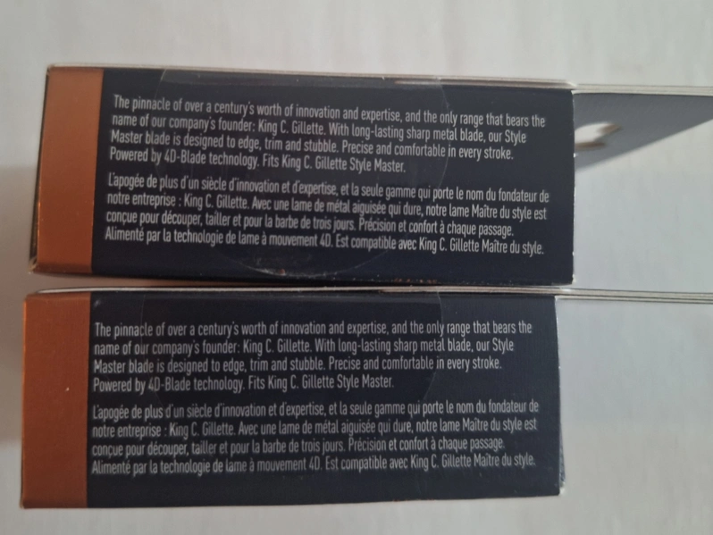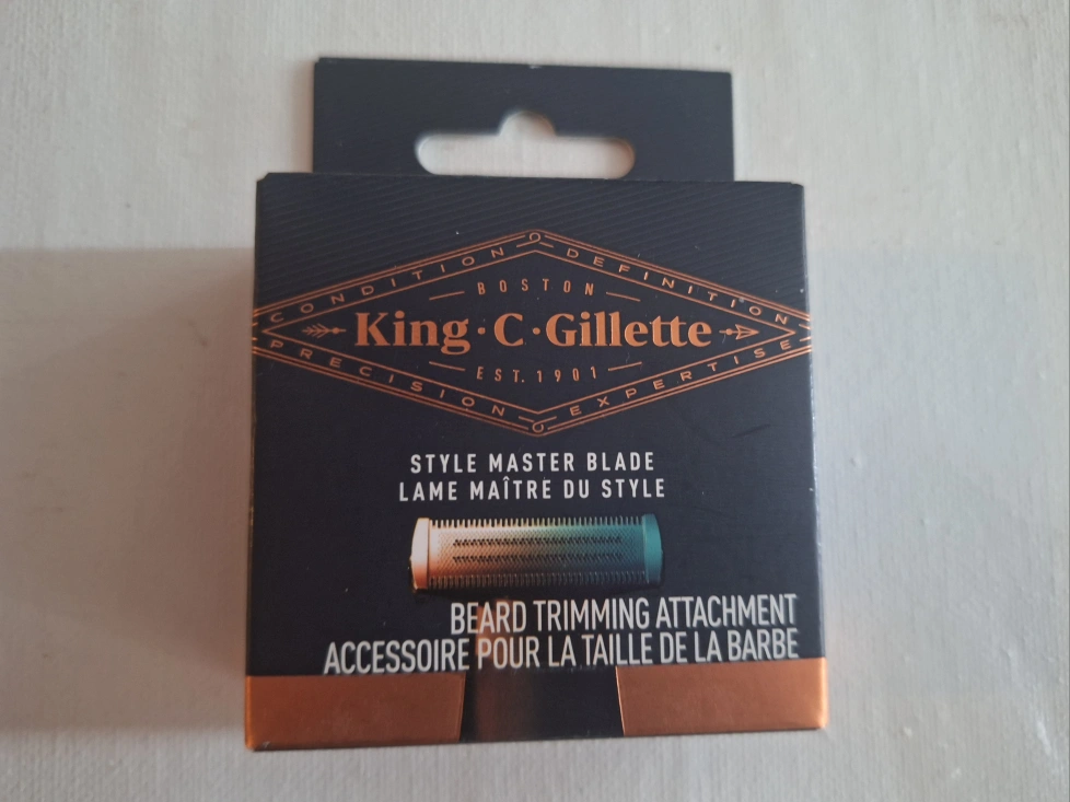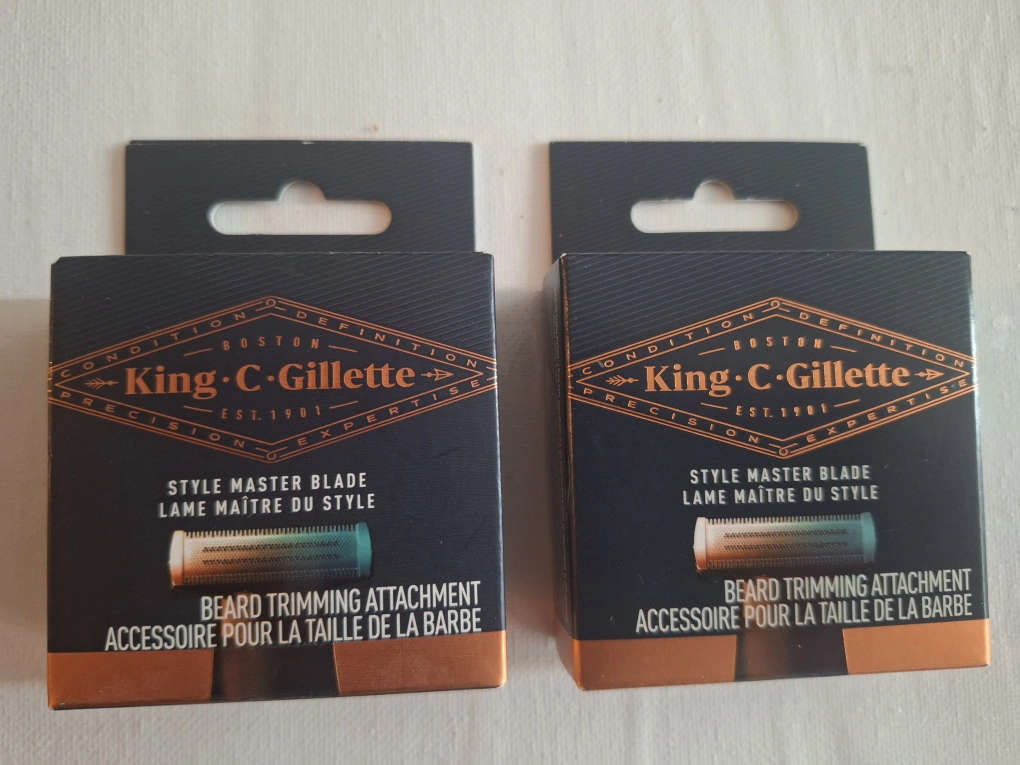 New, unopened King C. Gillette Style Master Blades. Beard trimming attachments. Full metal blade, lasts up to 6 months. 4D-blade technology. Compatible with King C. Gillette Style Master.