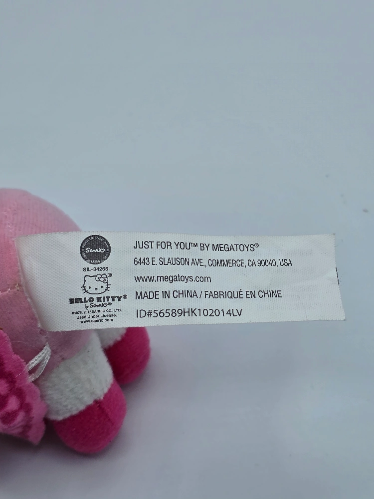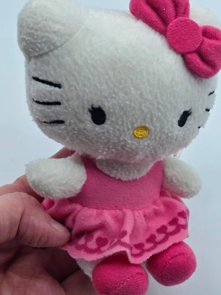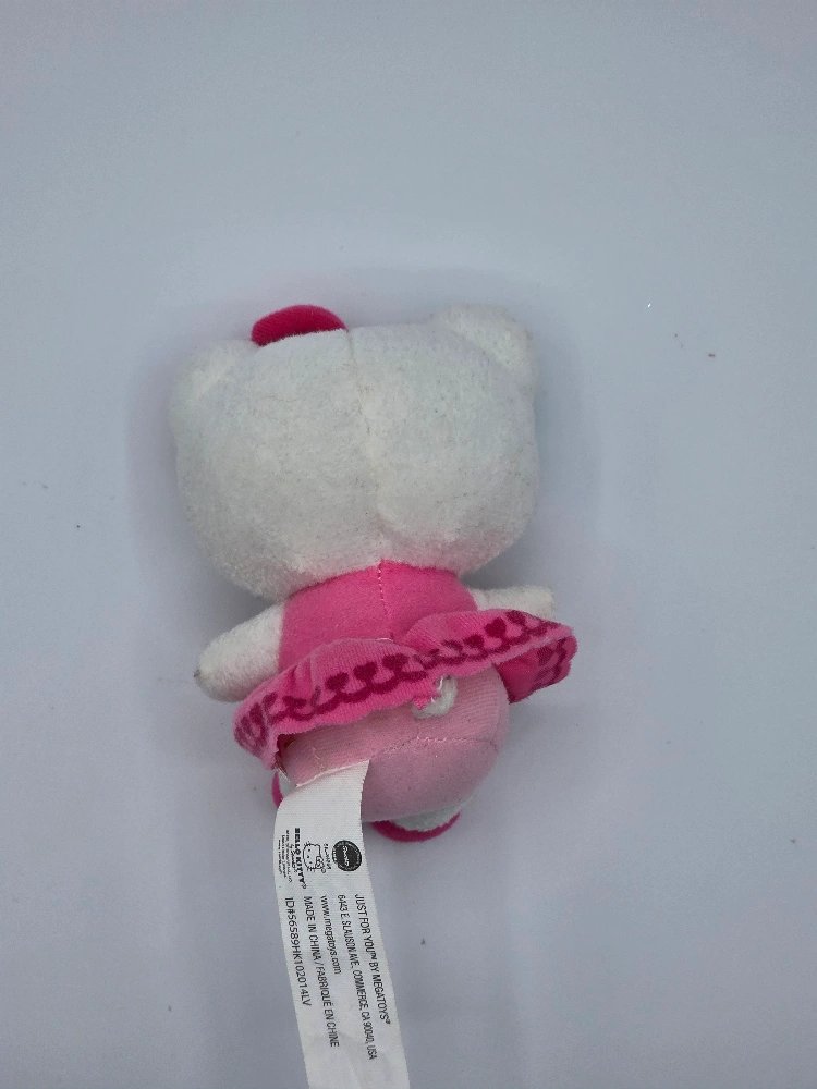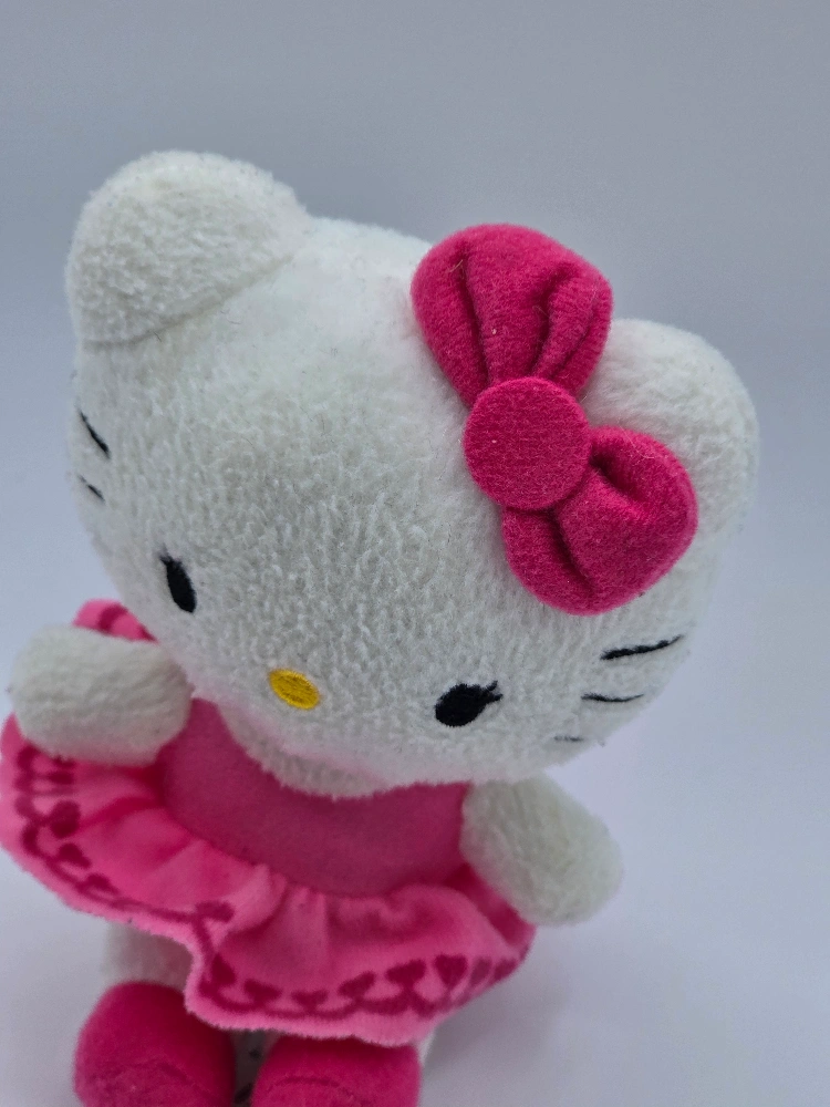Hello Kitty Valentines Pink Heart Dress Plush - in excellent condition. **very minor wear** Rare Valentine's Day Hello Kitty wearing a pink bow & dress with a heart design along the bottom of her skirt, that isn't holding the Hello Kitty heart. Very hard to find! Approximately 6" tall.