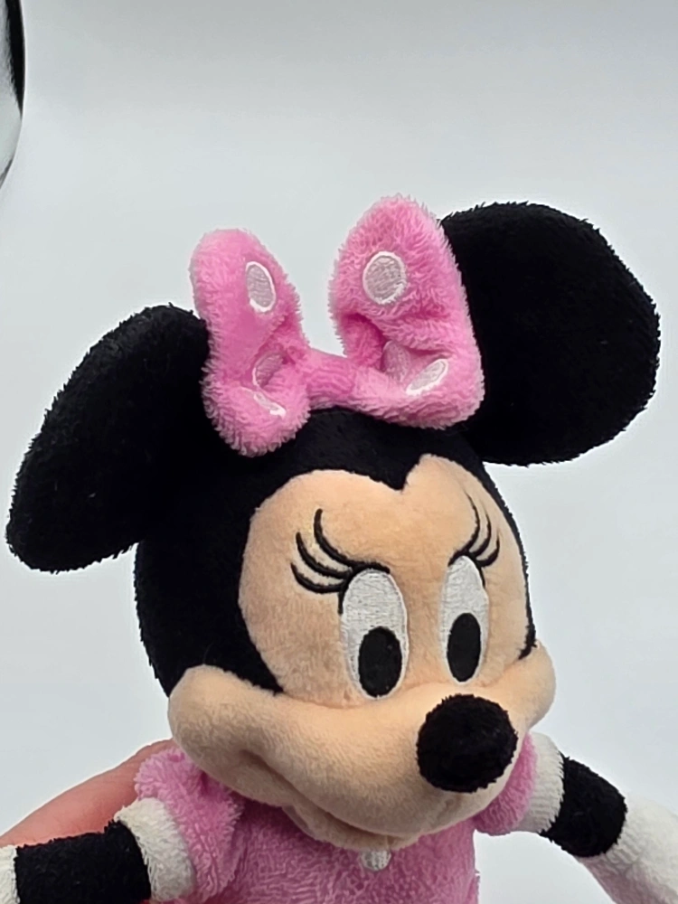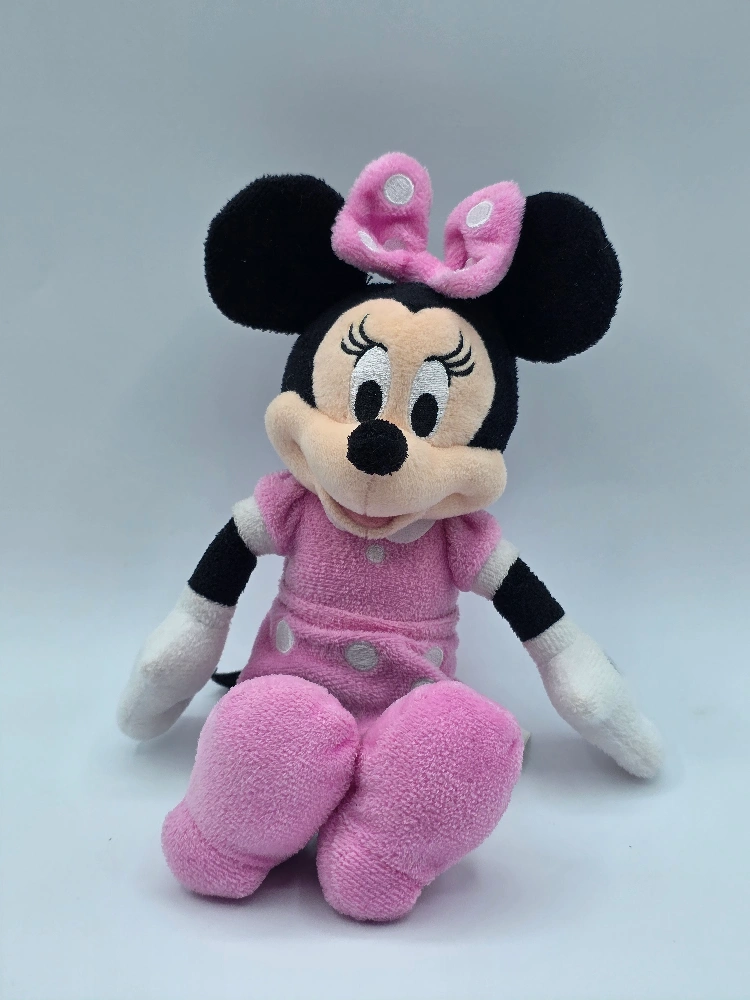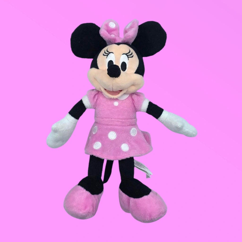 Disney Minnie Mouse Pink Polka Dot Dress Plush - in excellent condition. **very minor wear** Embrace the magic of Disney with this charming Minnie Mouse plush doll, adorned in her iconic pink polka dot dress. Perfect for Disney enthusiasts of all ages, this stuffed animal is designed to delight with its vibrant colors and beloved character design. This approximately 9" plush is a cozy companion for playtime or a nighttime snuggle.