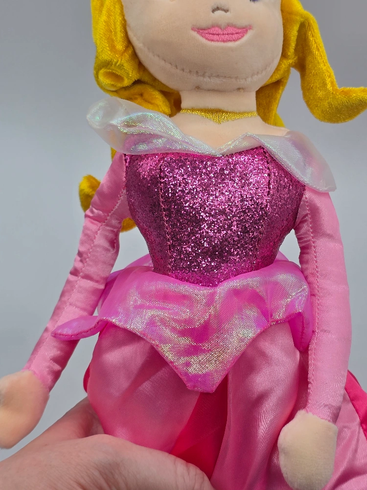 Ty Disney Sparkle Princess Aurora Sleeping Beauty Plush Doll - in excellent condition. **some minor wear throughout** No Disney Princess collection would be complete without Disney's Aurora from Sleeping Beauty. Her lovely golden locks of hair enhance her crown of shiny gold. Her beautiful dress is accented by textured sparkles. Approximately 16" tall.