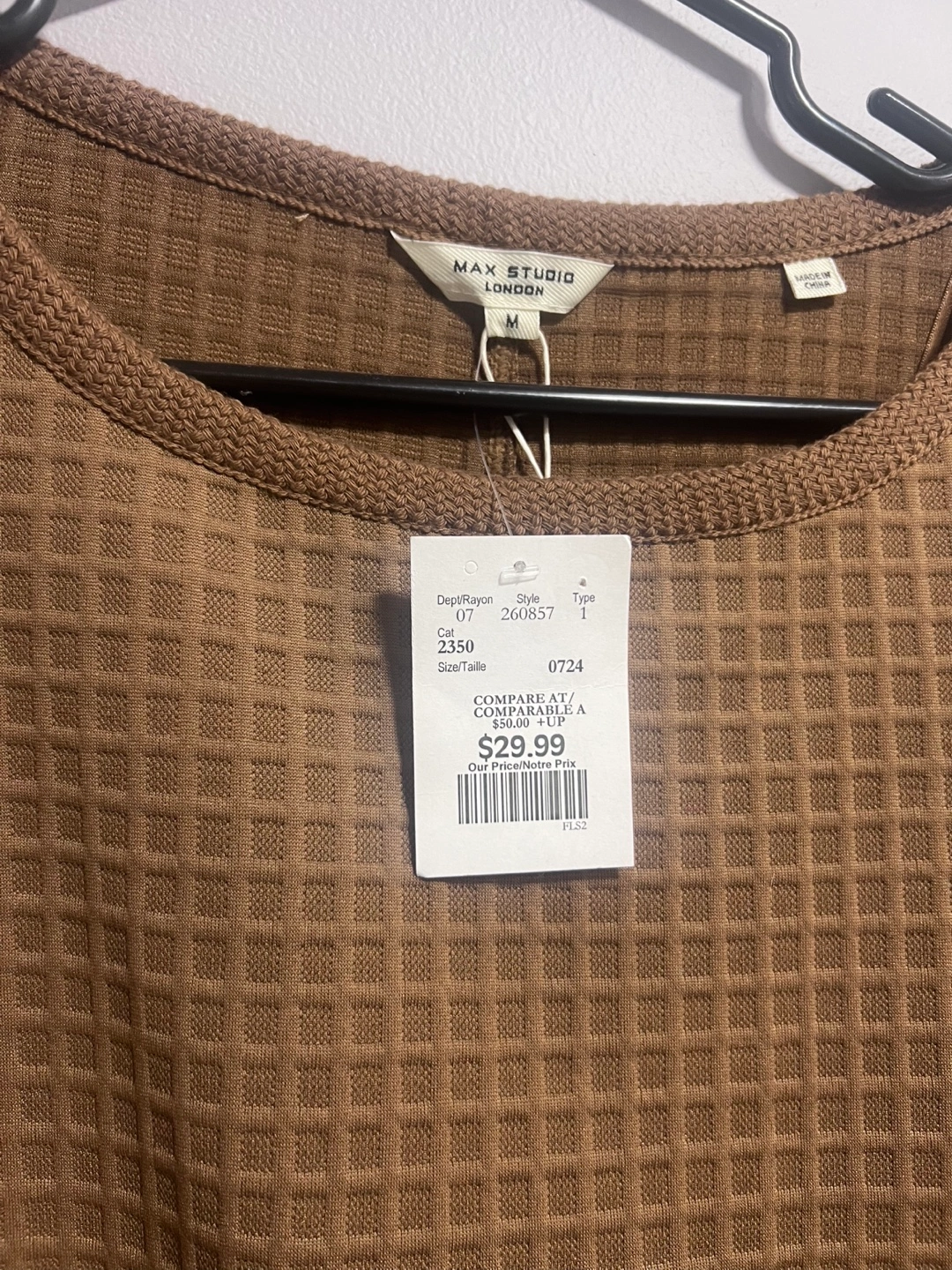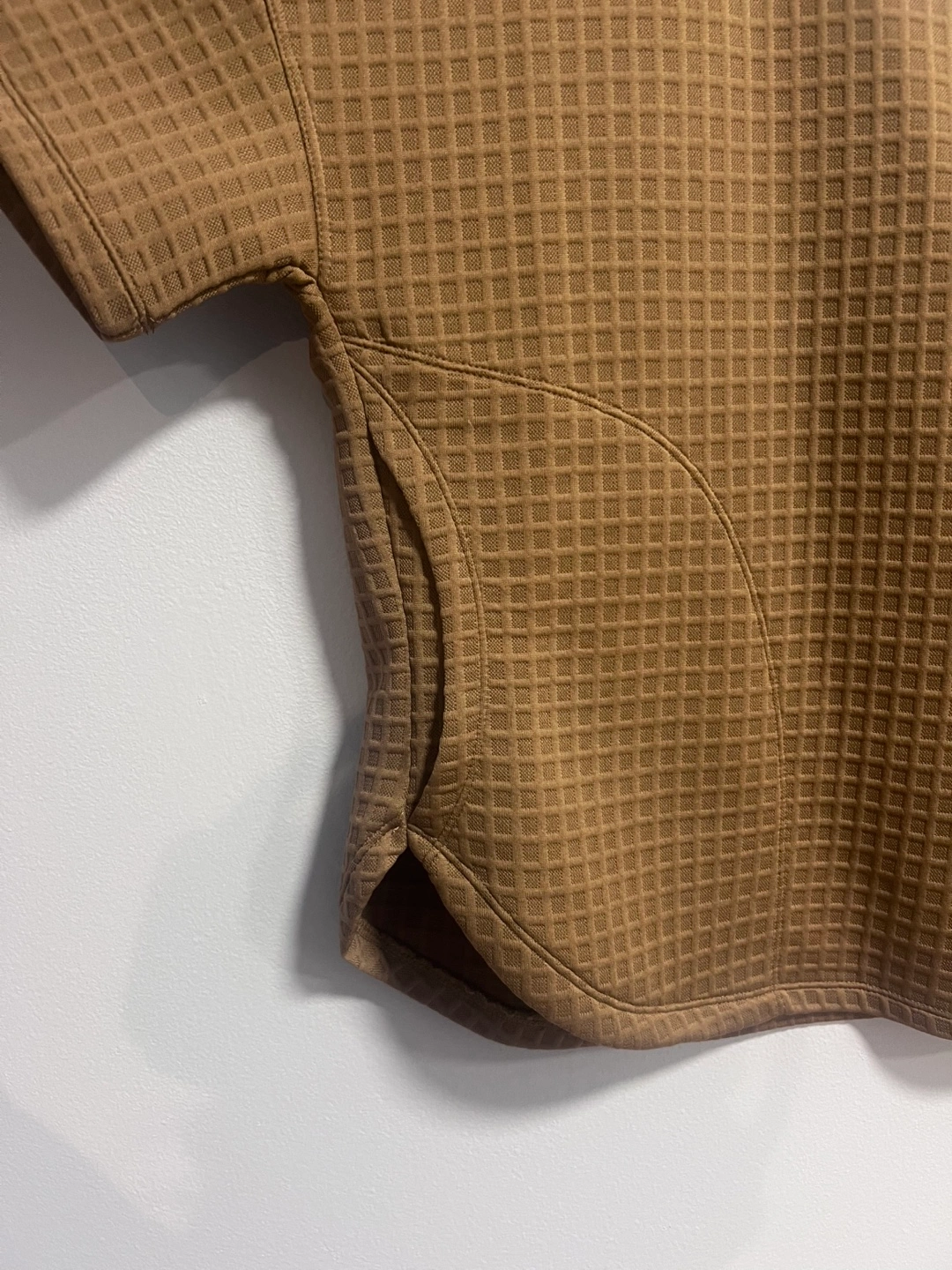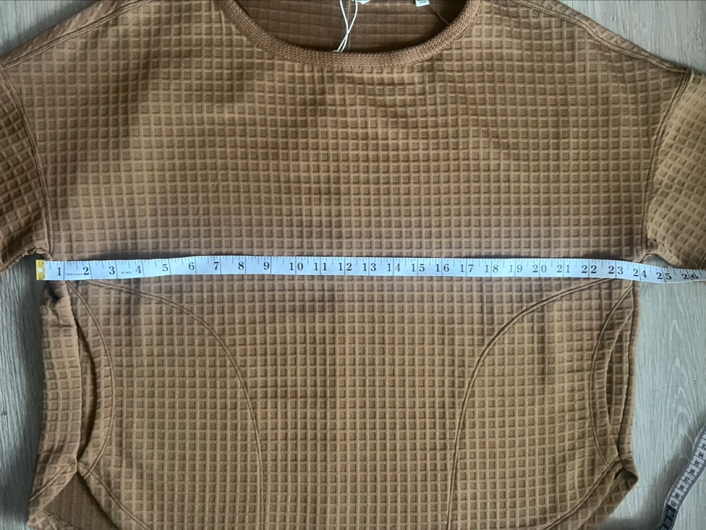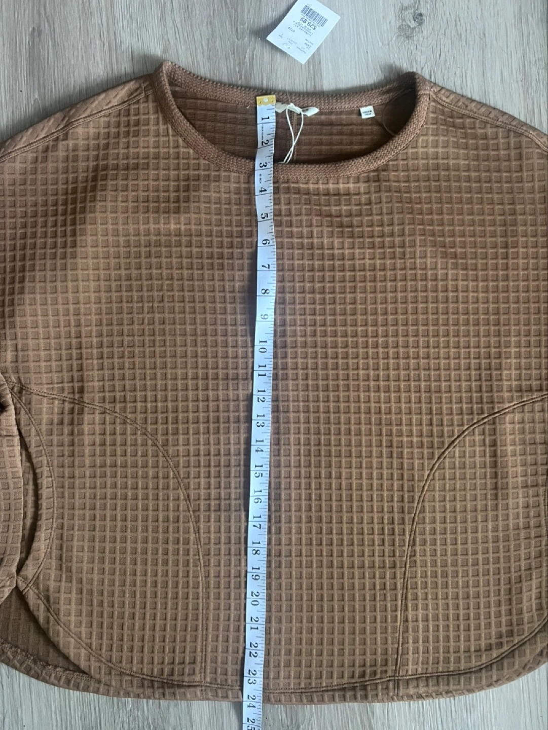 Brown waffle knit cropped top. Short sleeves. Relaxed fit. Size medium. Side pockets. New with tags.