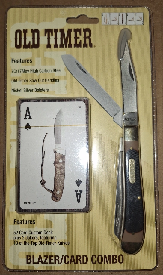 This brand new, factory sealed, Schrade Old Timer Folding Jack Pocket Knife / Playing Cards Combo is a great gift for any collector or outdoor enthusiast. Made with stainless steel blade material and a slipjoint lock type, this pocketknife features a clip point blade with a plain edge. Perfect for everyday carry or adding to a knife collection, this original Schrade model is a must-have for any knife enthusiast. Please see my other listings.