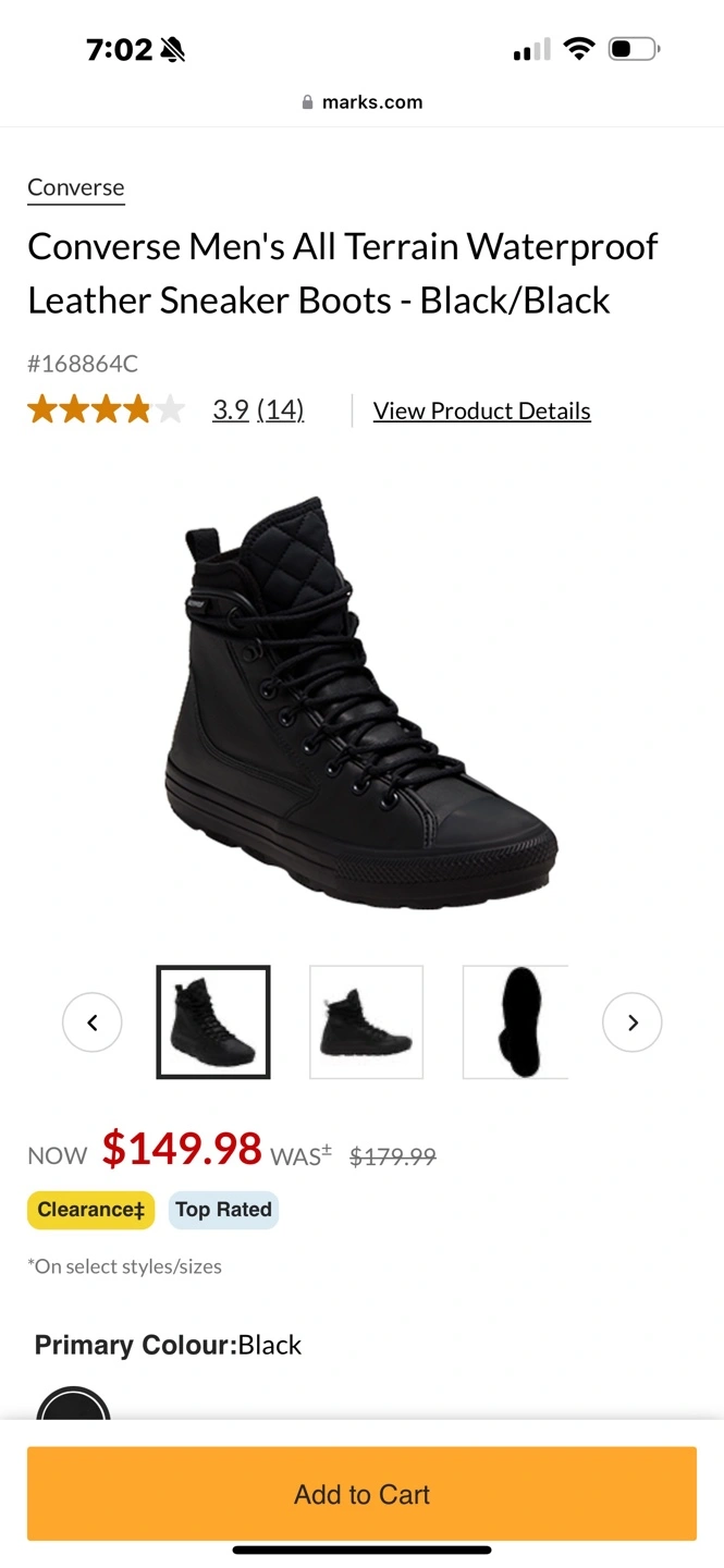 Men's black leather high-top sneaker boots. Waterproof design. All-terrain outsole. Good condition.(Obo)