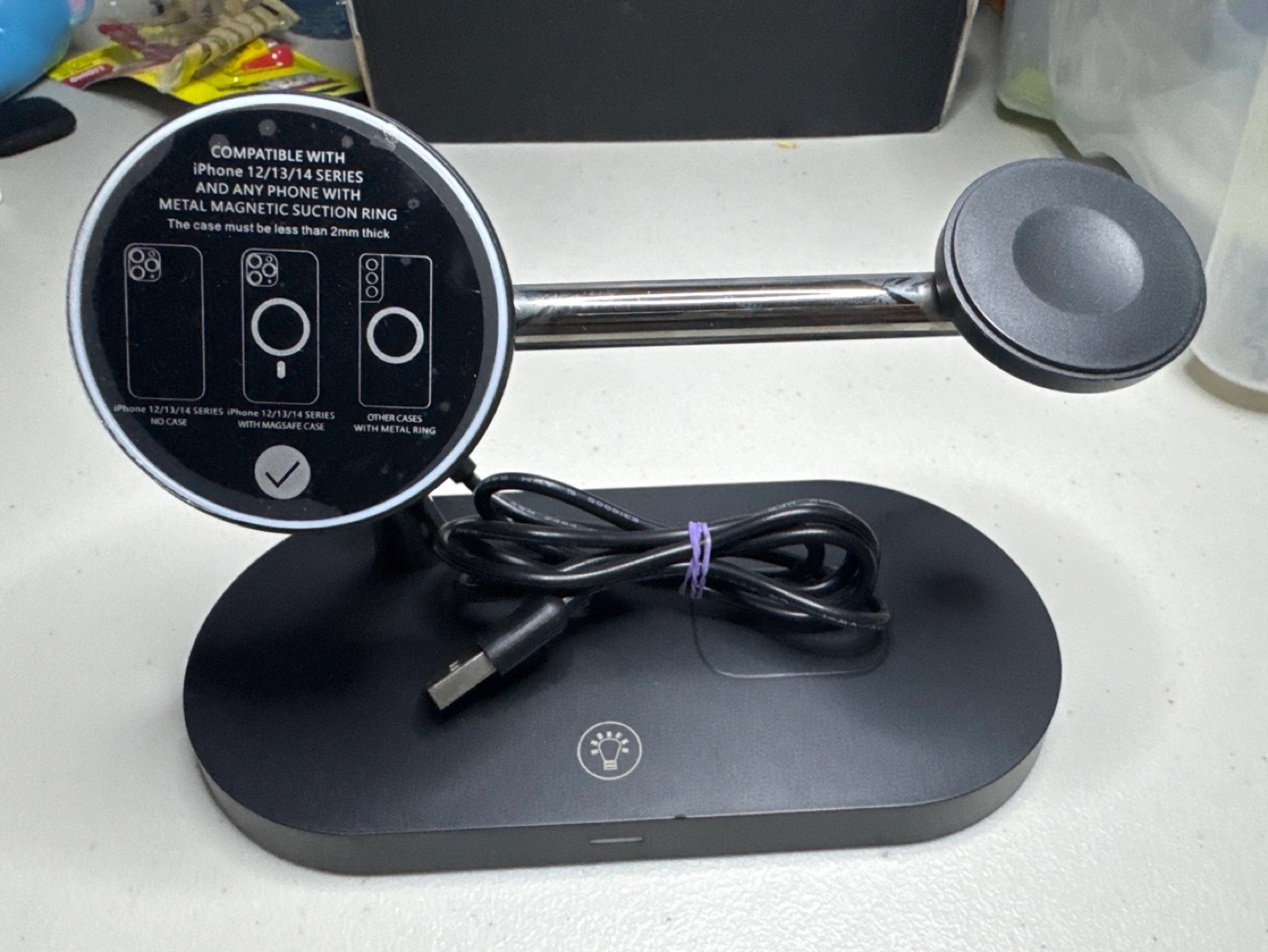 Charges iPhone 12/13/14 series and Apple Watch. Magnetic suction ring. Includes USB-C cable. Fast wireless charging. Has back light Smoke free pet free Pick up only. Closed to Fairview mall in Kitchener Only serious inquiries Cash only low ballers will be ignored