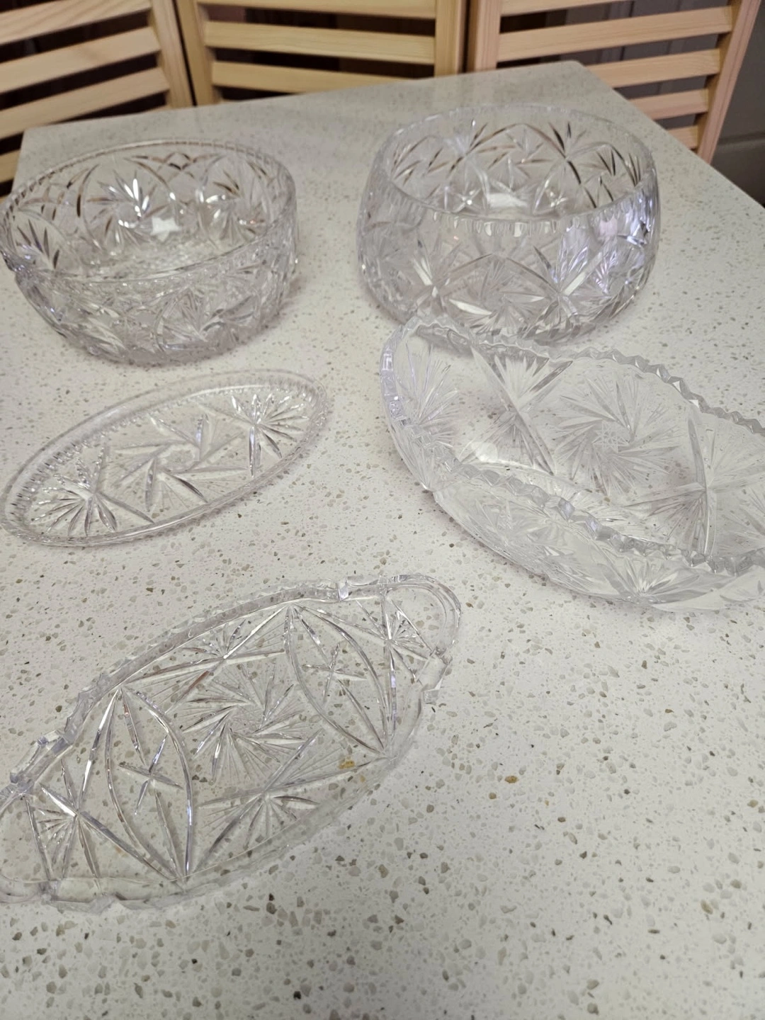 Vintage crystal cut glass serving bowls and trays. Like-new condition. $10 each for trays $15 each for bowls Selling for my mom, pickup in Sherwood Park but can accommodate for Edmonton pickup.