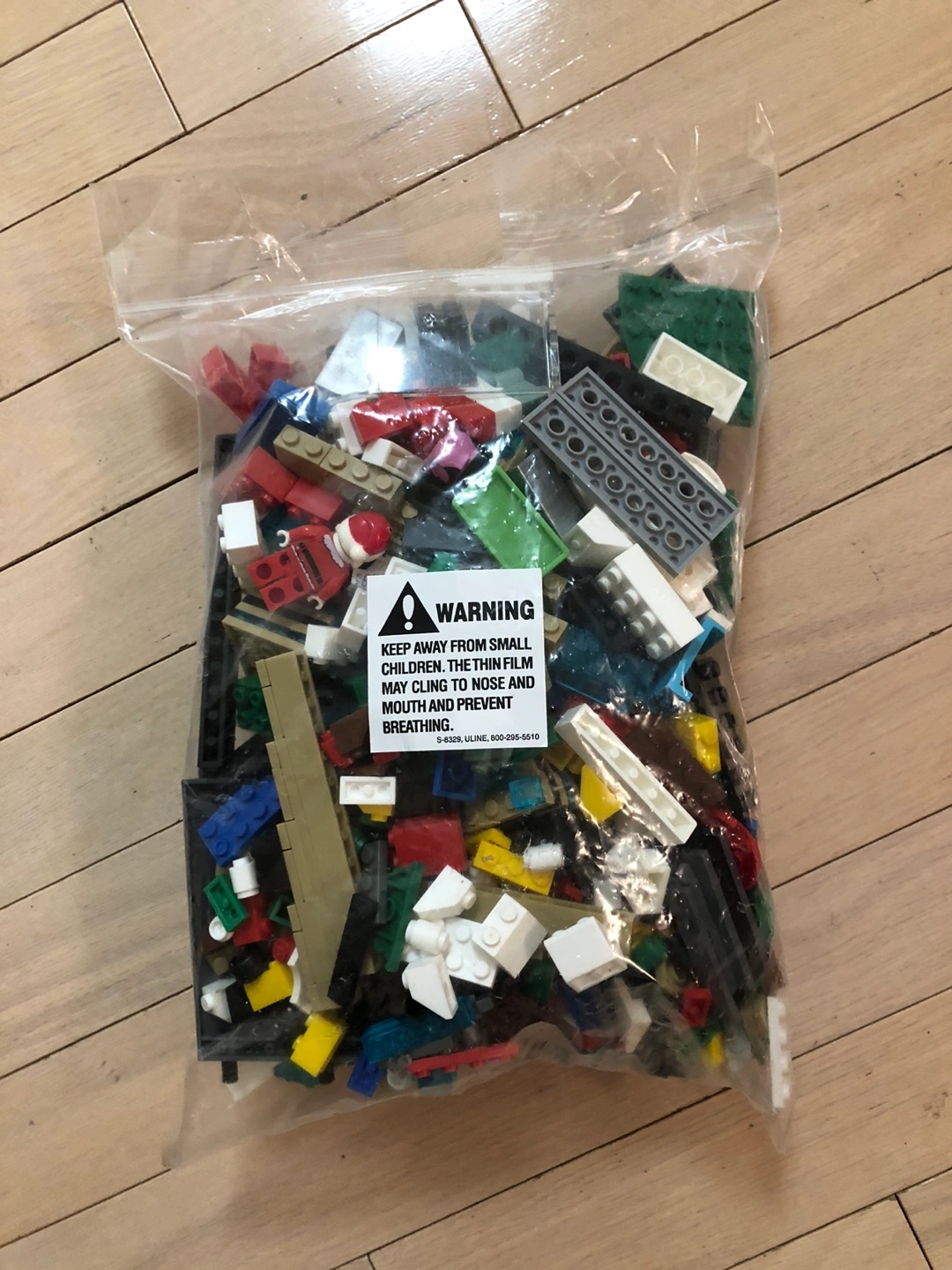 Bulk bag of LEGO bricks. Various colours and sizes. Great for creative building. Many pieces included.