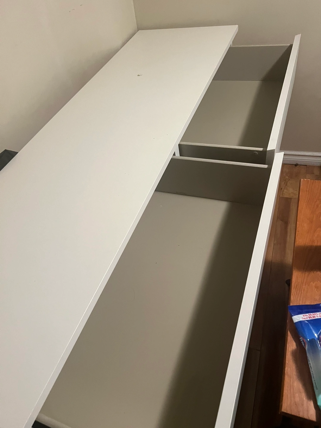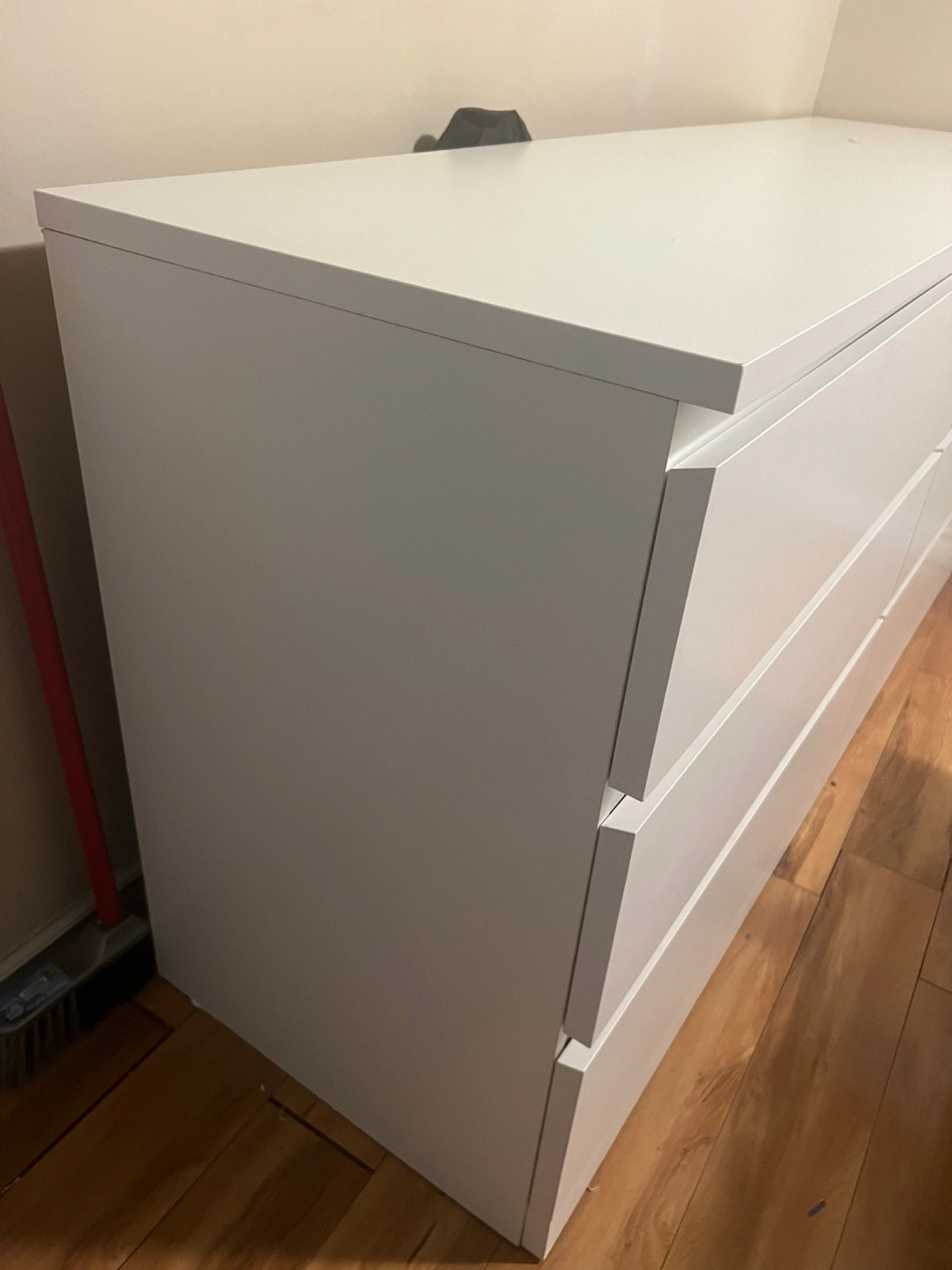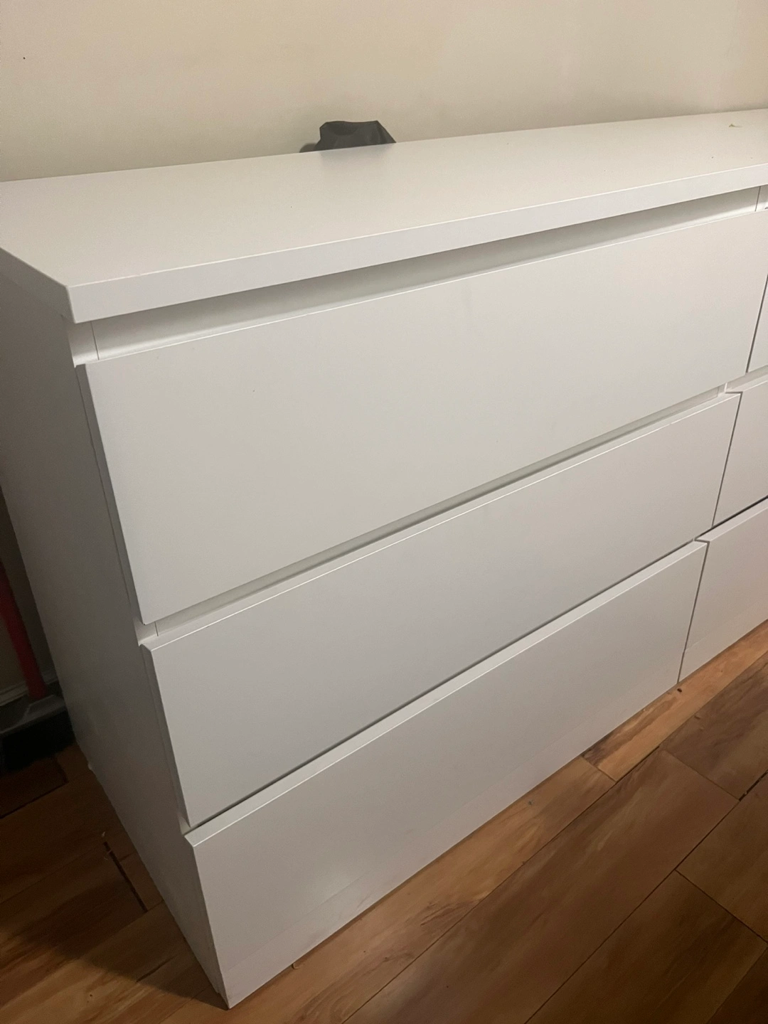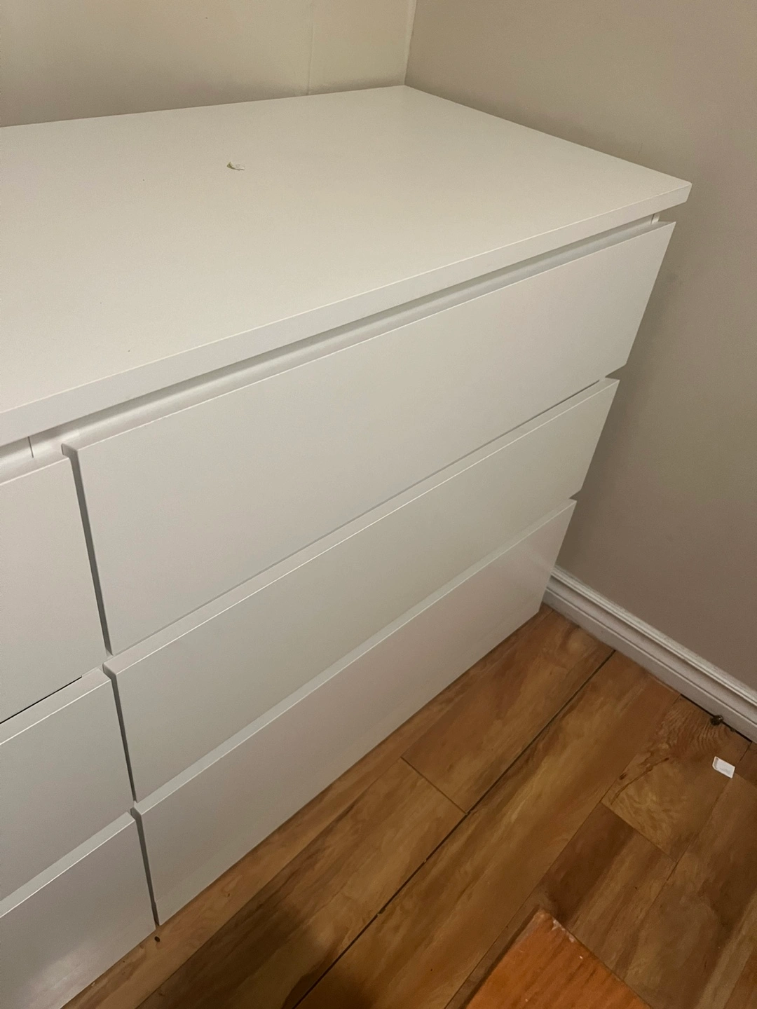 Six-drawer dresser, white. Good condition. KEA MALM series. Check Number 6 photo bottom minor wear no major issue. Drawer works well less than a yr old Pick up only Located near Weston and 401