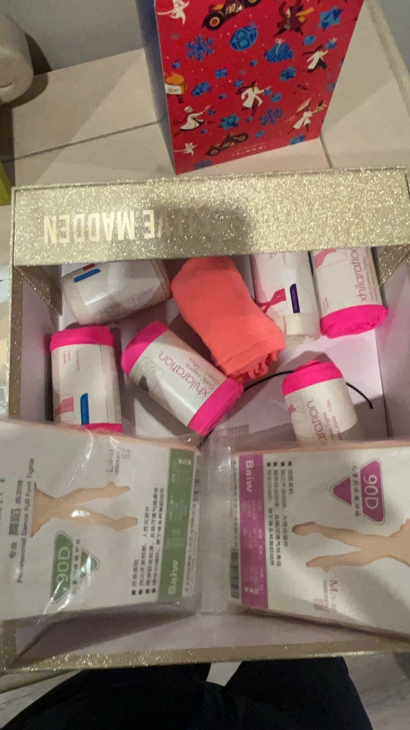 Assortment of girls' tights in various colours and sizes. Includes multiple pairs of pink, coral, and nude tights. Brands include Xhilaration and Baiw.