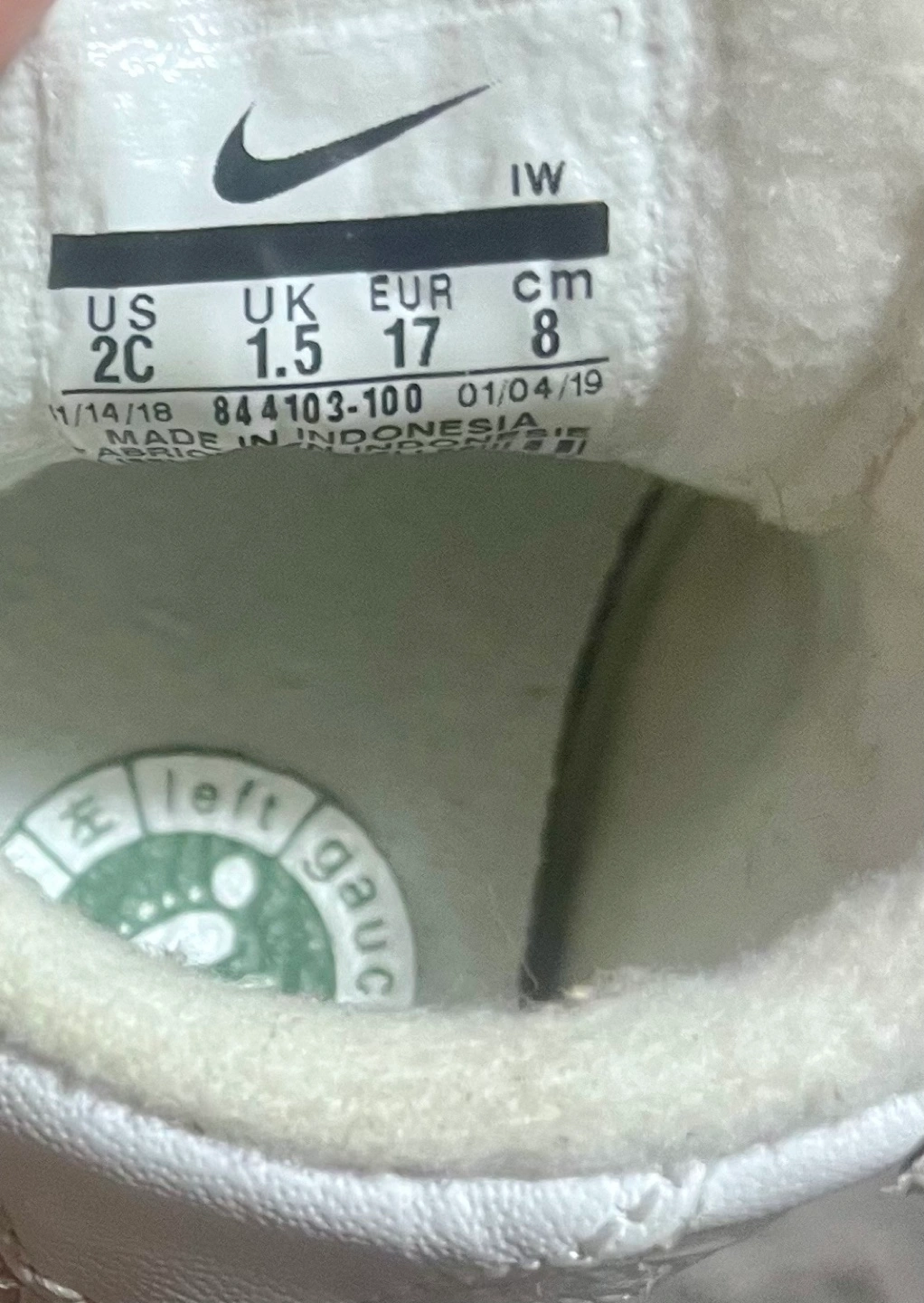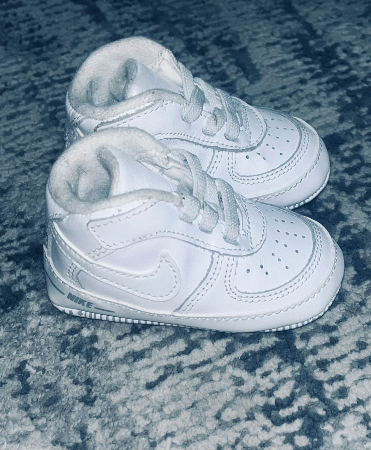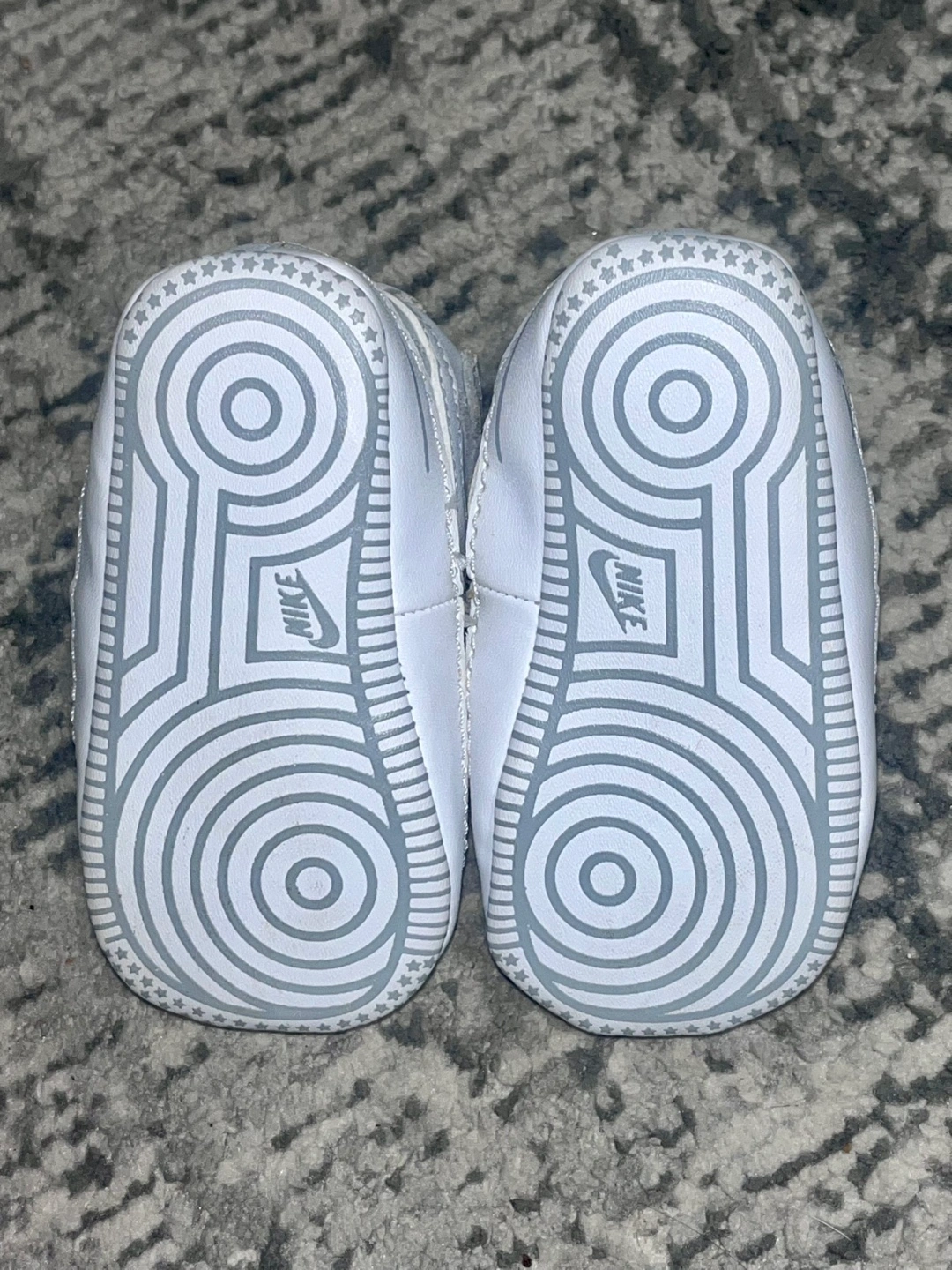 Adorable baby Nike Air Force 1 shoes. White leather, size 2C. Pre-owned, like new condition. Perfect for a little sneakerhead.