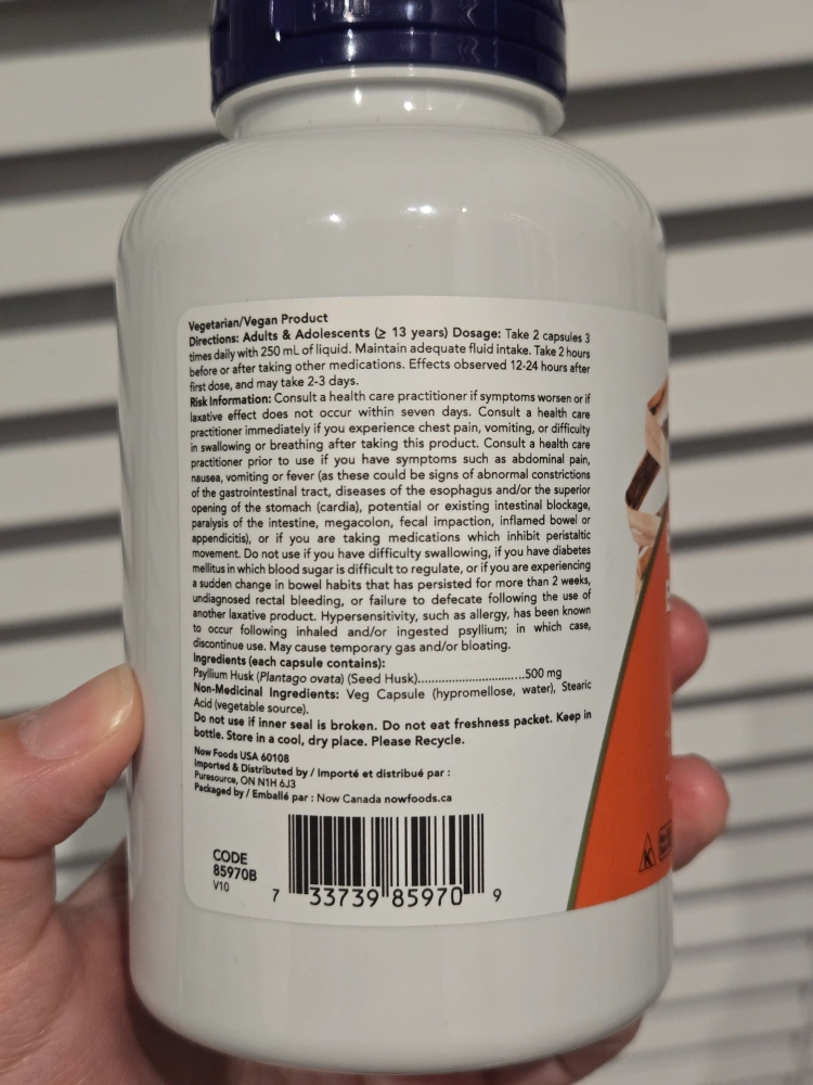 Unopened. Exp date: Nov 2025. Bulk forming laxative for gentle relief of constipation and/or irregularity. 200 vegetarian capsules. 500mg per capsule. Dietary supplement.