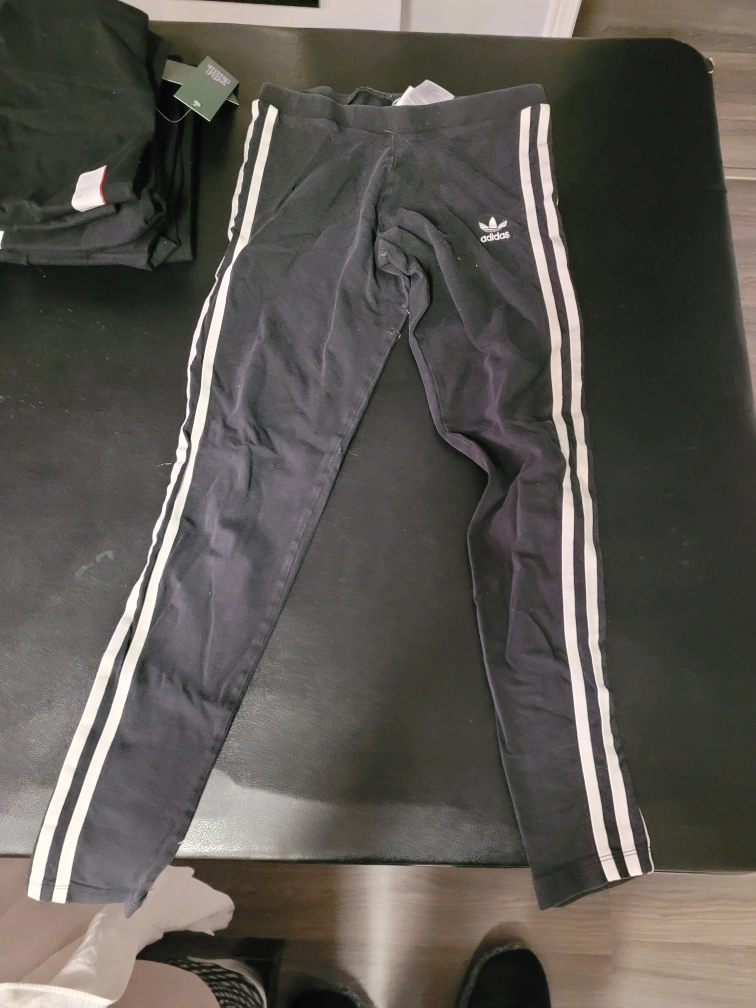 Black leggings with white stripes. Size 12. Good condition. x small size