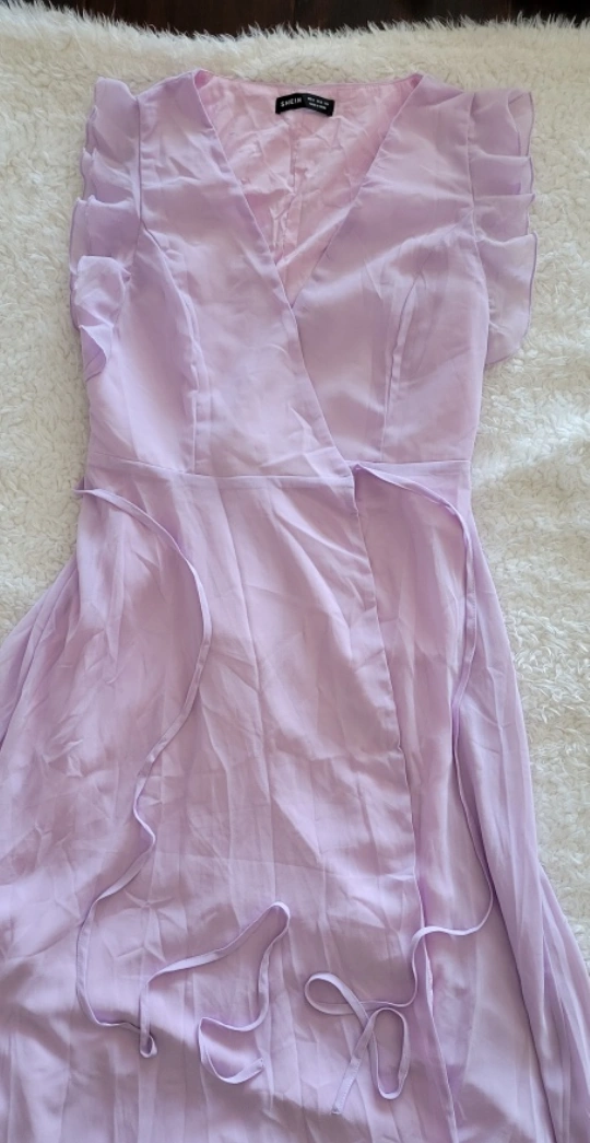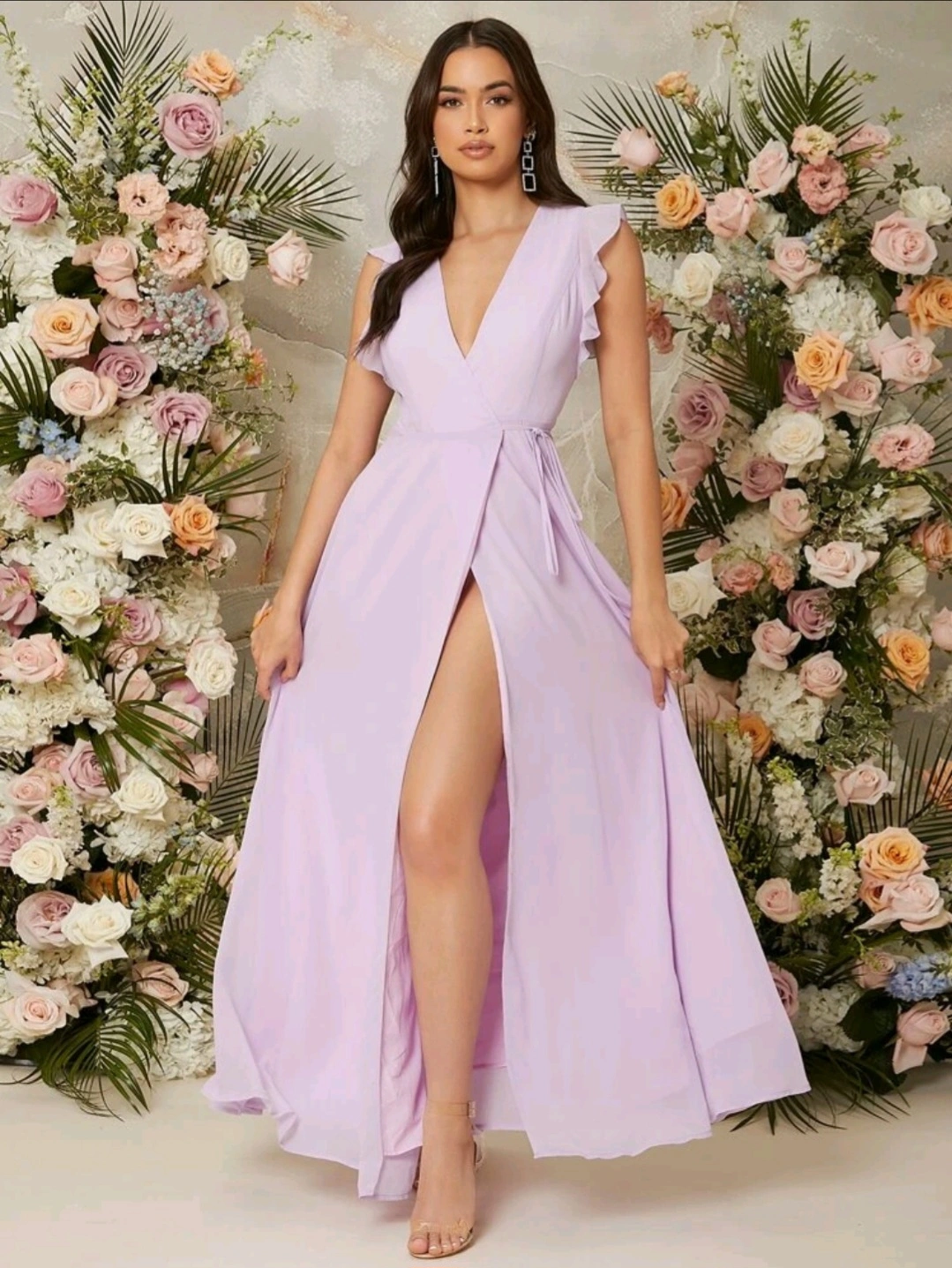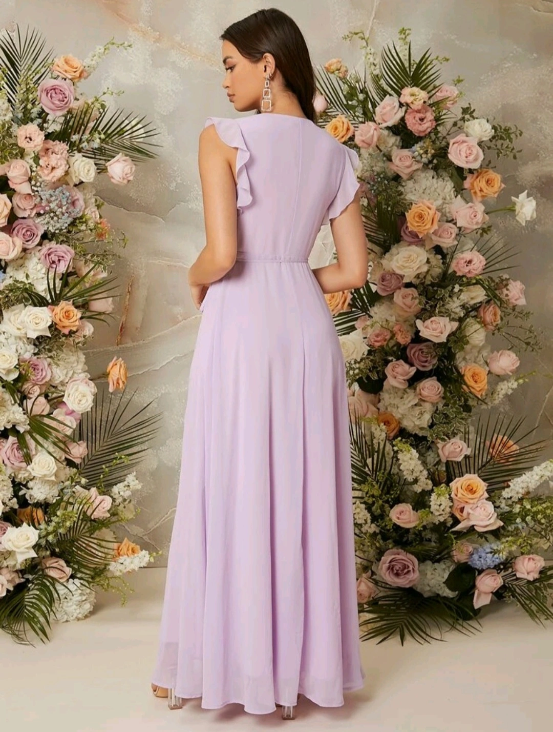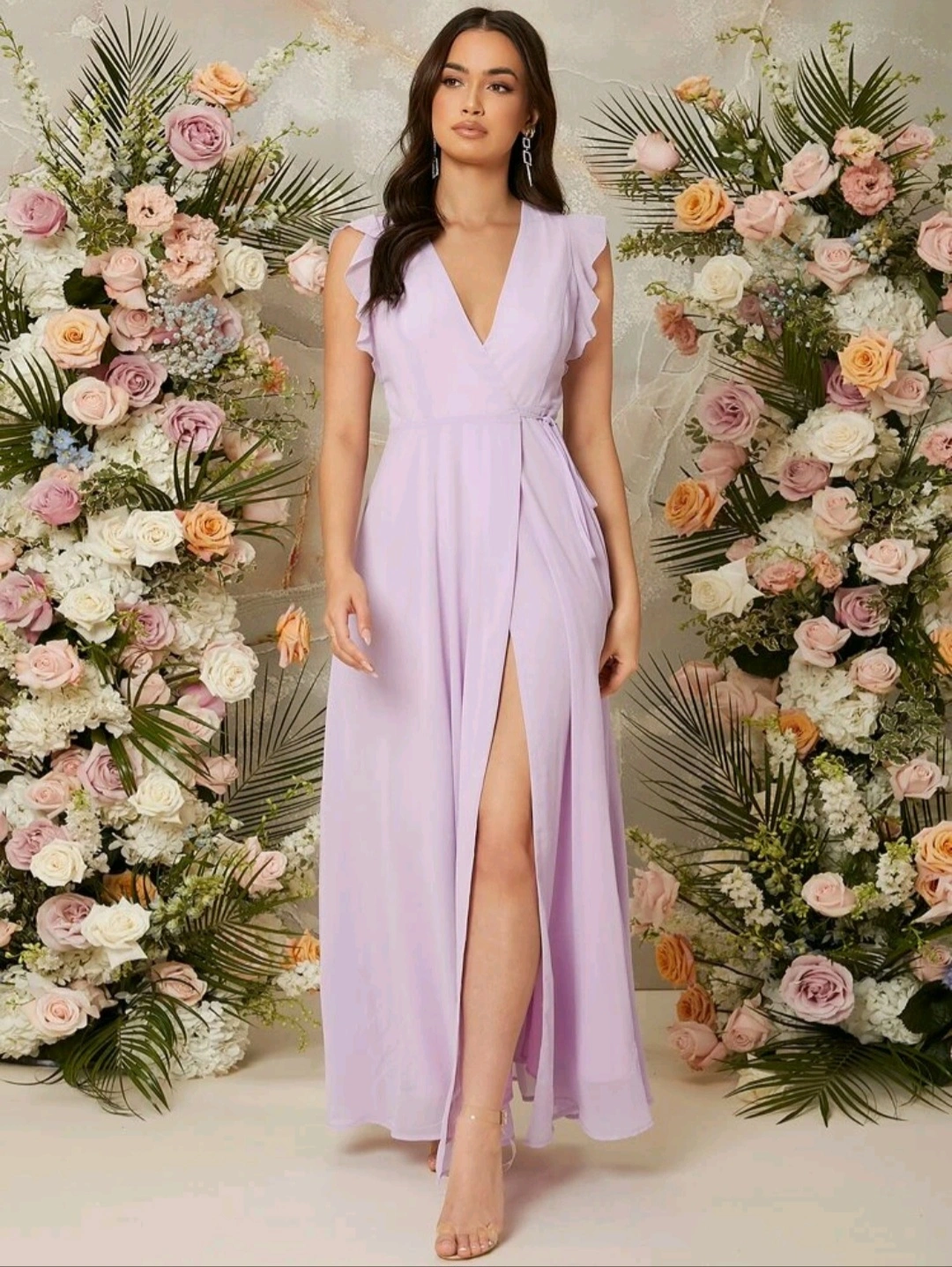 Beautiful lavender purple maxi dress in never-used condition. Features a wrap design, V-neckline, ruffle sleeves, and a thigh-high slit. Lightweight and flowy material. Perfect for a special occasion. Check out my other listings and bundle to save. ๐๐ป๐ธ Cash and pickup only on Brimley and Eglinton Rd E. in Scarborough.