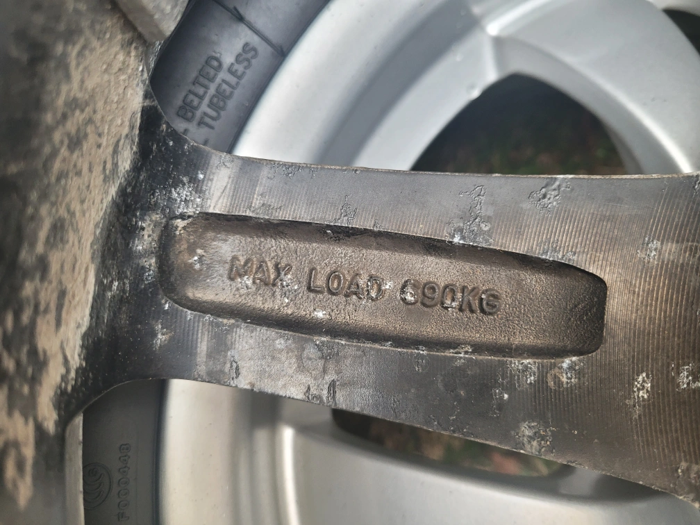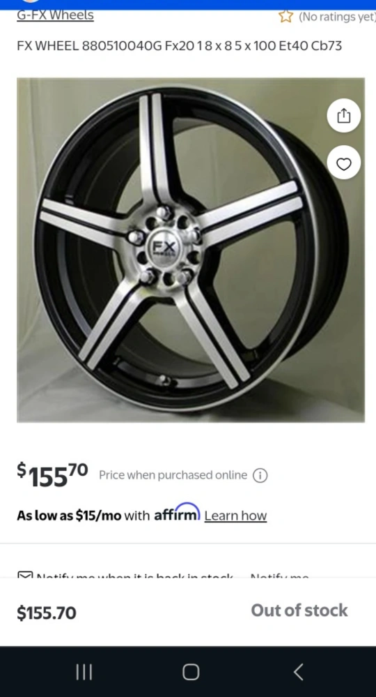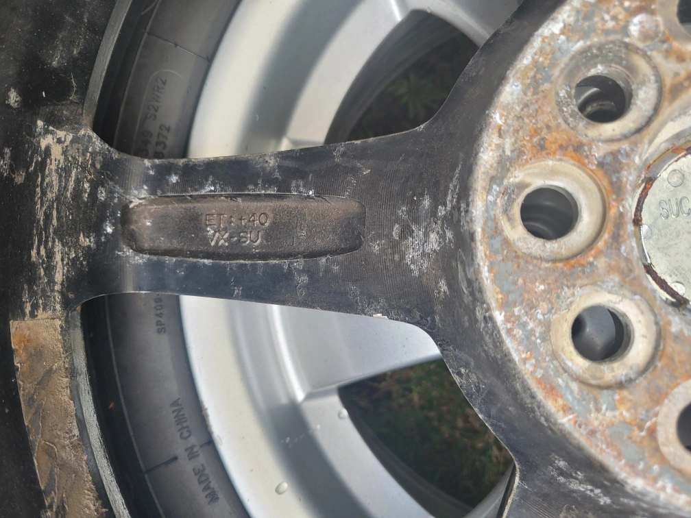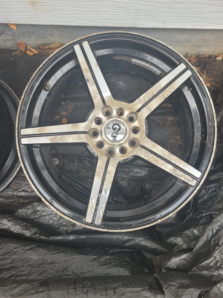 two used alloy wheels. 18x8J size. 5x114.3 bolt pattern. dual pattern. ET40 offset. Max load 690kg. Made in China. Some surface rust and wear. Sold as is. 2 available. voxx, g-fx, pulse brand. fits honda, Acura... not sure what's the second pattern $40 each