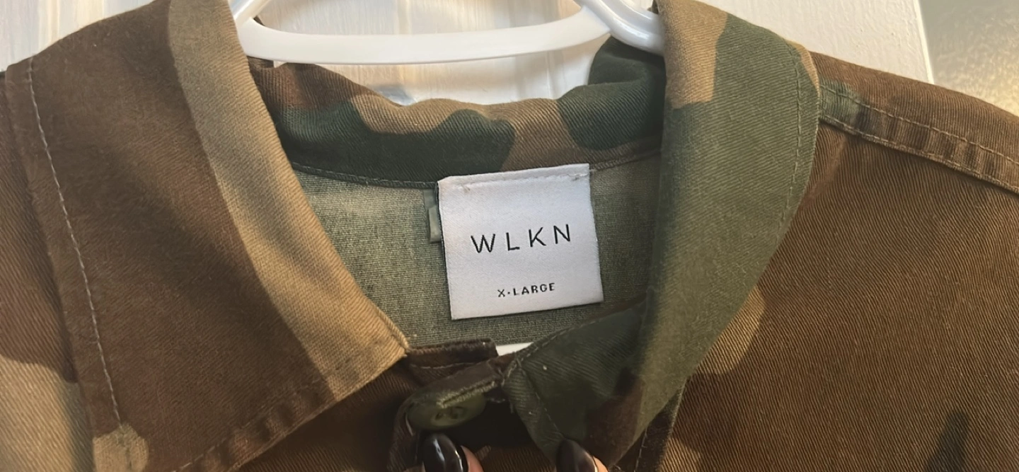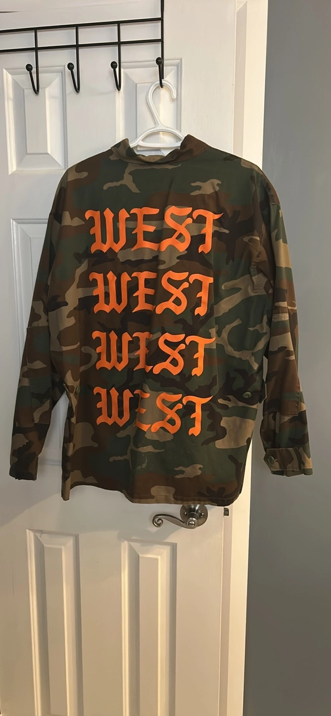 WLKN brand, X-Large size men. Camo print jacket/ button up Long sleeves . West" repeated on the back. Pre-owned in very well maintained condition