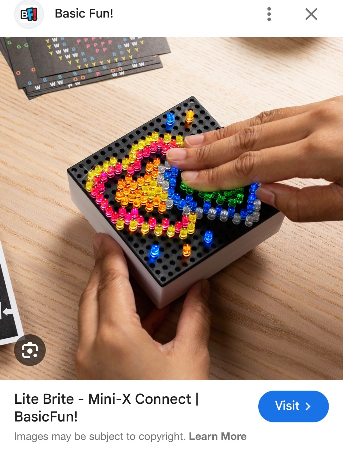 Mini light-up pegboard. Includes pegs and templates. Ages 4+. Fun for creative play. Retails for $19 plus tax New in the box - Giftable Lakeshore and parklawn Or queen and ossington Willing to trade for items from my list
