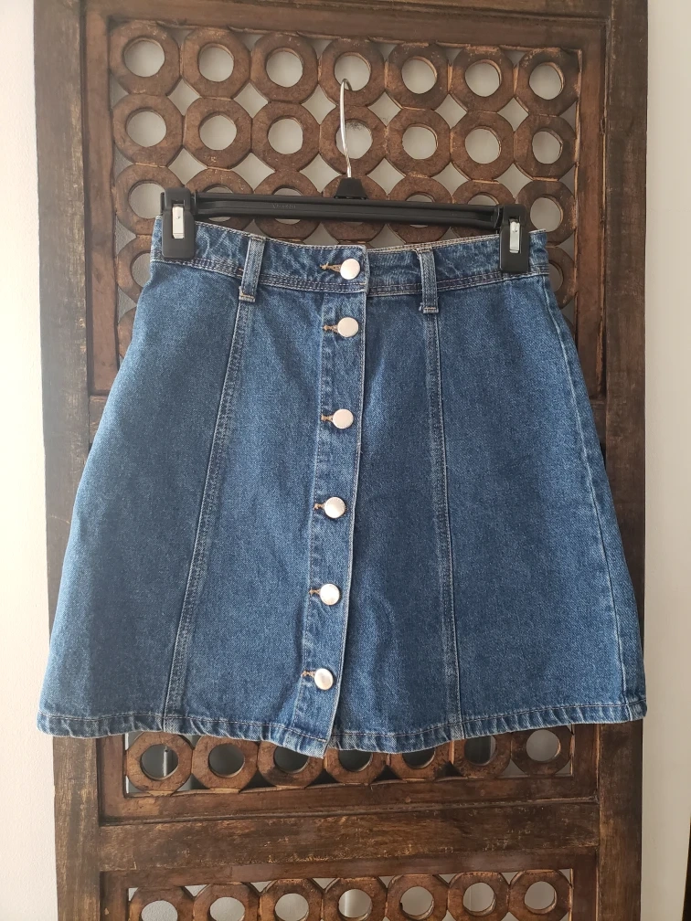 Cute denim mini skirt. Button closure. Classic style. Excellent condition.