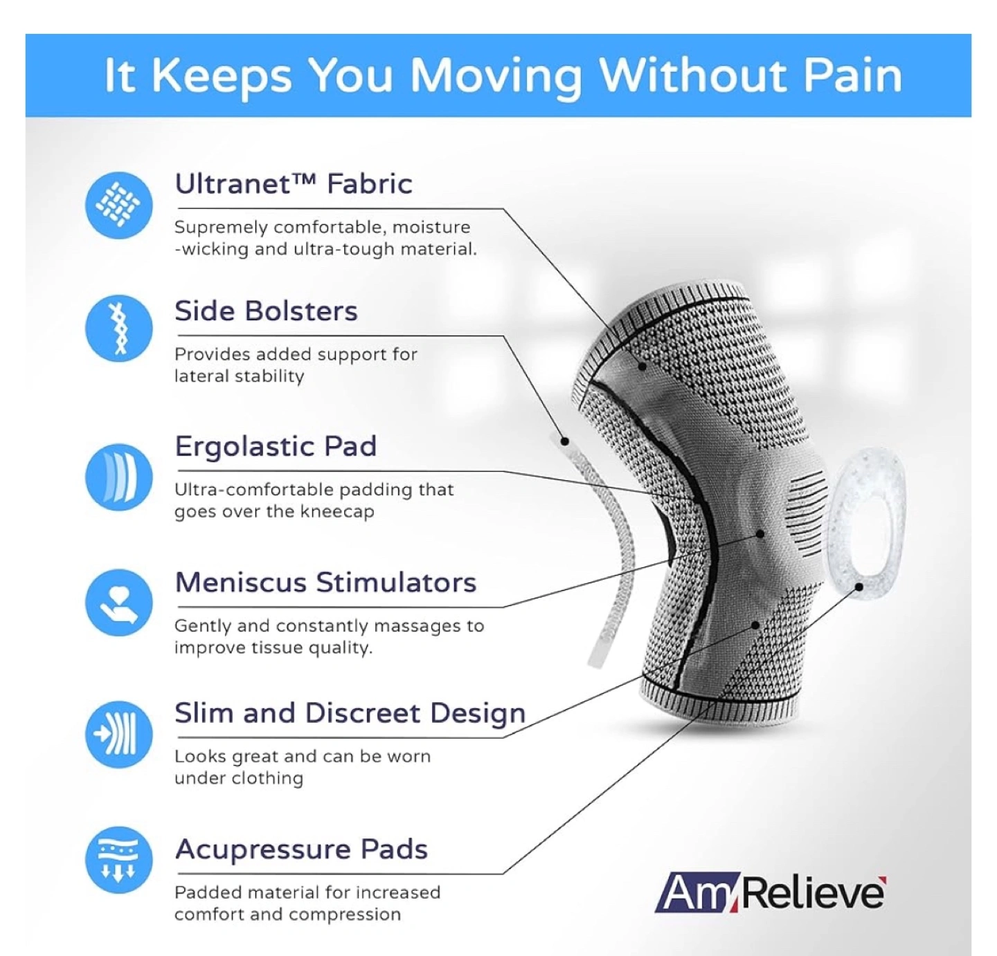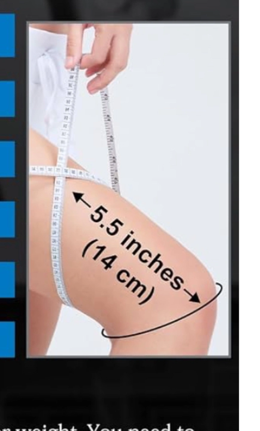 Comfortable knee brace. Features side bolsters, ergonomic padding, and meniscus stimulators. Slim and discreet design. Highly breathable. Two anti-slippery silicon strips. Provides added support and lateral stability. Gently massages to improve tissue quality. Check the picture to measure your tight . This sleeves is 40cm or 15 inch in circumference. Measure your thighs 5 inches or 14 cm above your knee