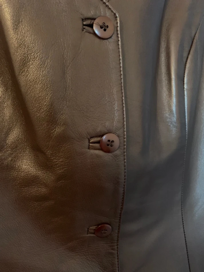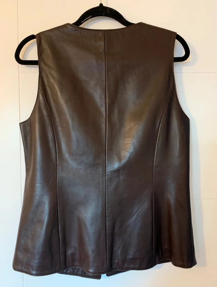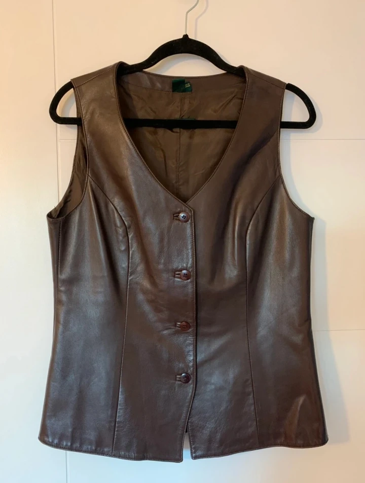 Brown leather vest. Button front. Sleeveless. Excellent condition. Too big, I wish this fit so bad.