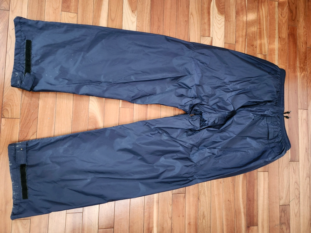 Men's navy blue rain pants. Packable design. Drawstring waist and cuffs. Mesh lining. Size 2XL. Good condition.