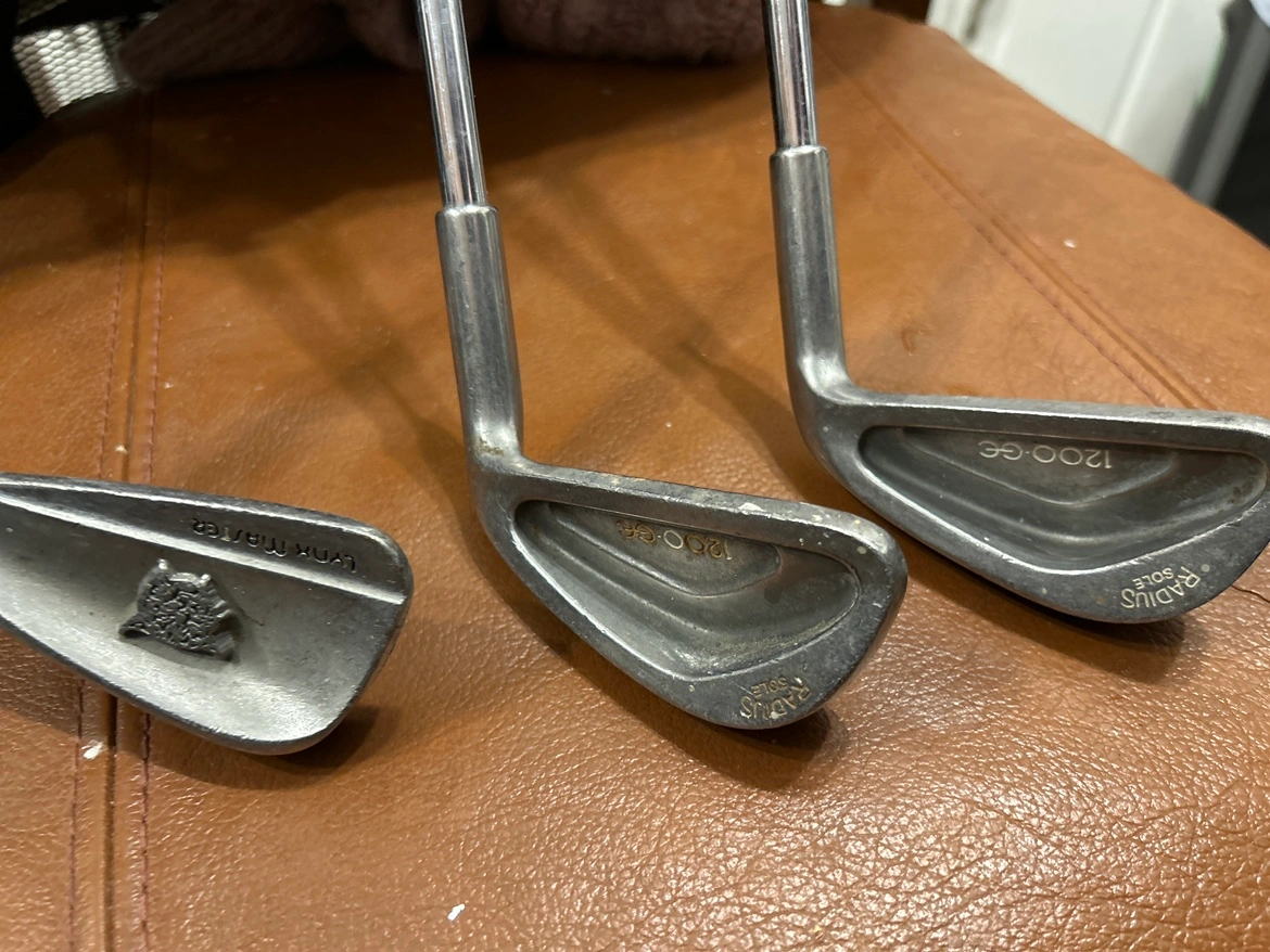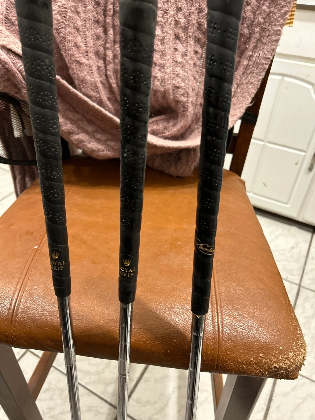 Set of three MacGregor golf clubs. Good condition. Royal Grip handles. Includes 7, 8, and 9 iron.