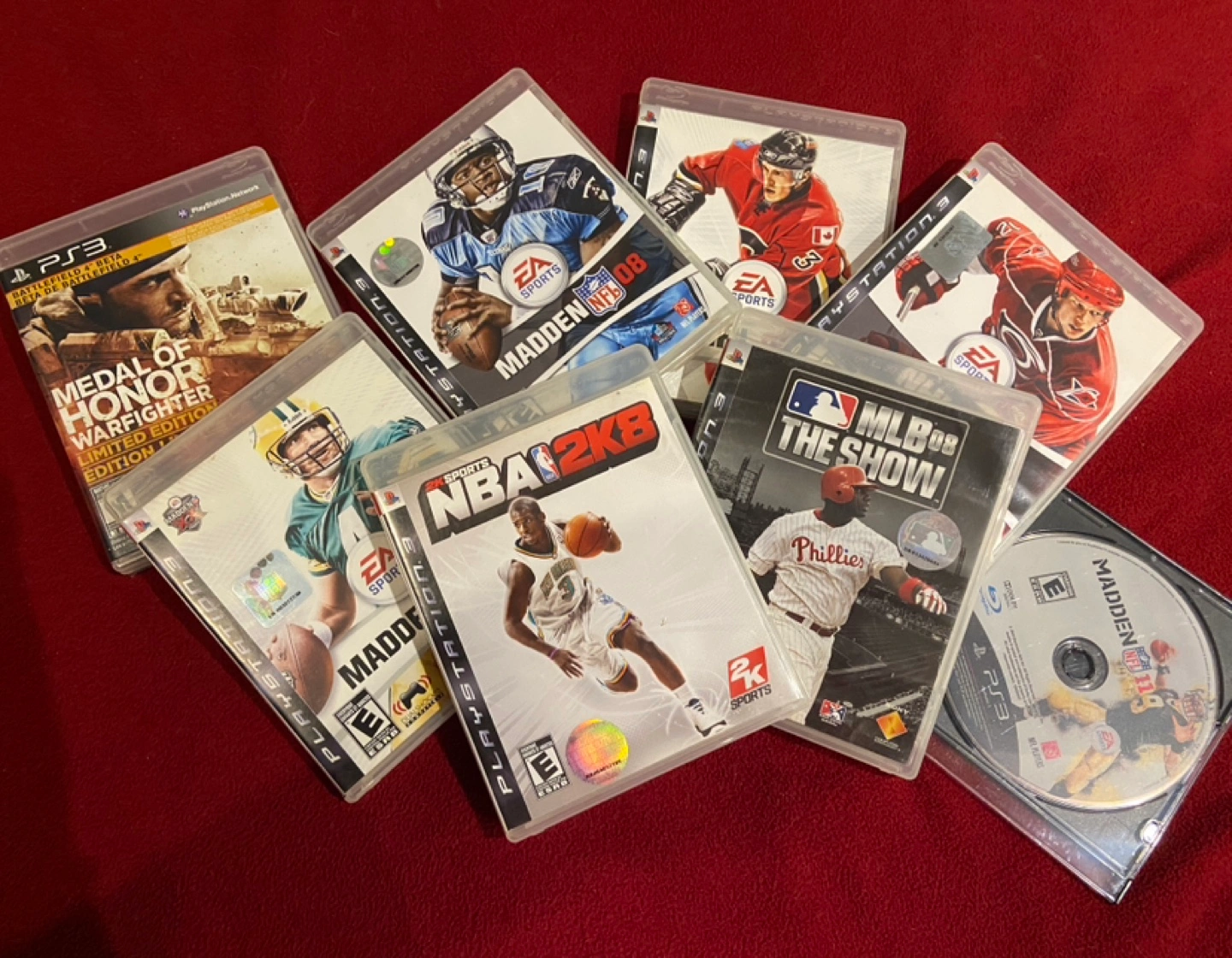 Collection of PlayStation 3 games. Includes various sports titles like Madden NFL 08, NHL, MLB The Show, and NBA 2K8, plus Medal of Honor Warfighter. Games in good condition. 9 games in total Take all for $15