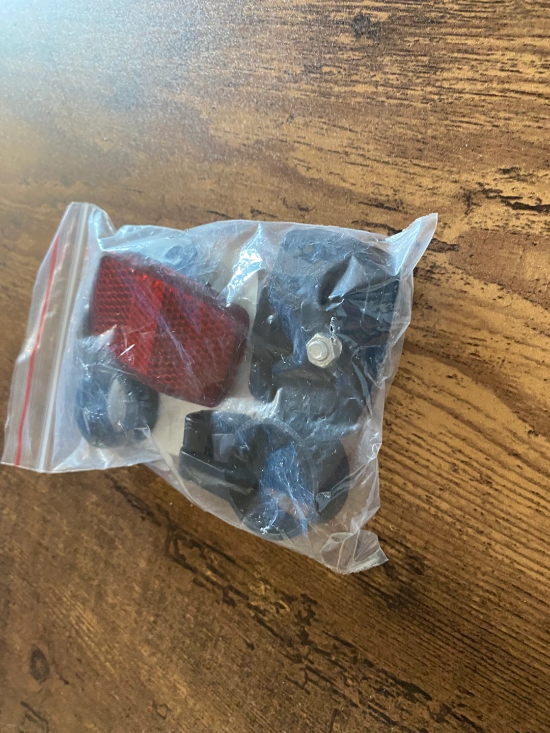 Brand new bicycle reflector and rear light set. Includes reflector, light, and mounting hardware. Perfect for enhancing nighttime visibility.
