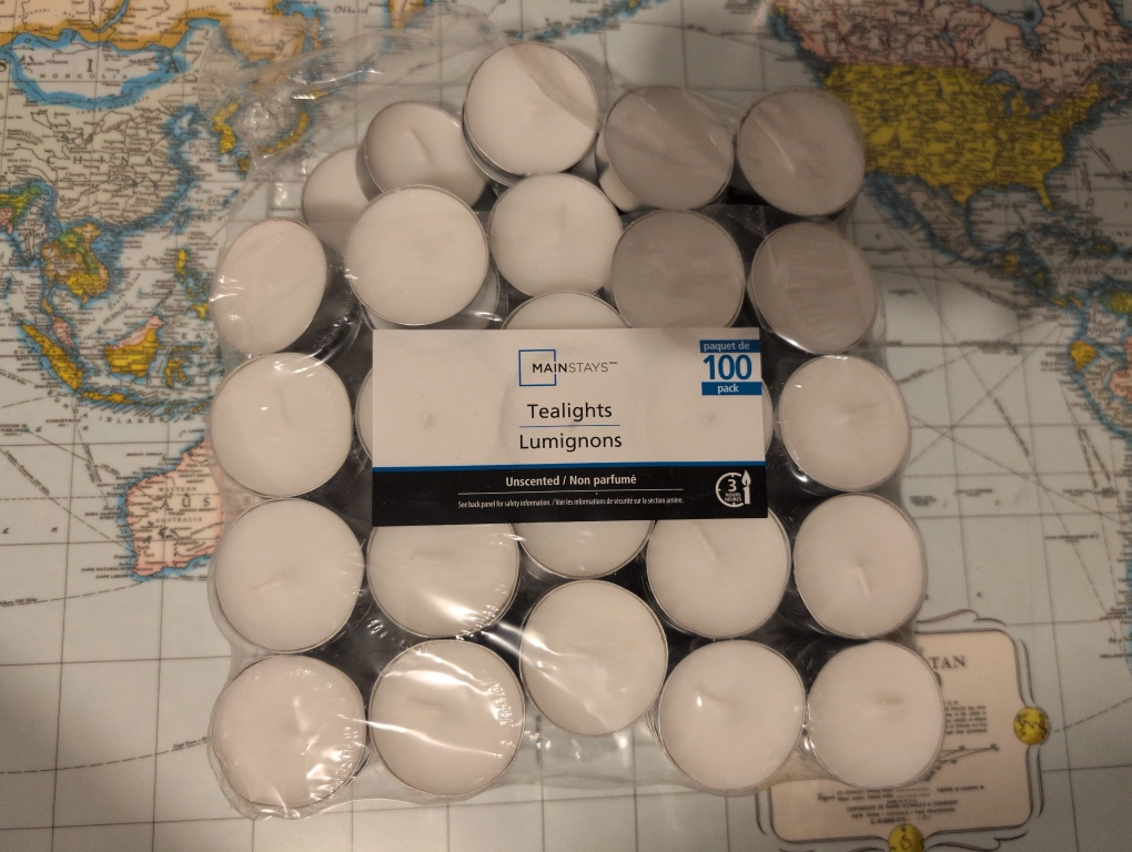 Bulk pack of 100 unscented tealight candles. Perfect for parties or everyday use. Great value. Address: brimley & pitfield Porch pick-up preferred.
