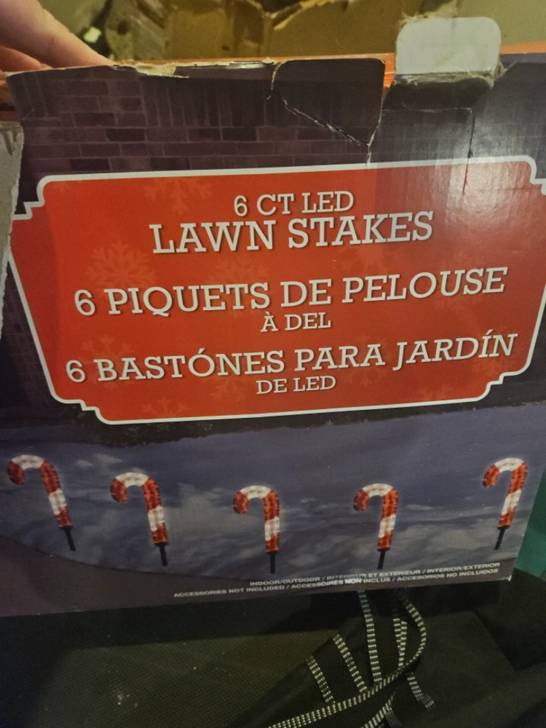 Set of six LED candy cane lawn stakes. Perfect for holiday decorating. Indoor/outdoor use. Includes stakes and lights. not used