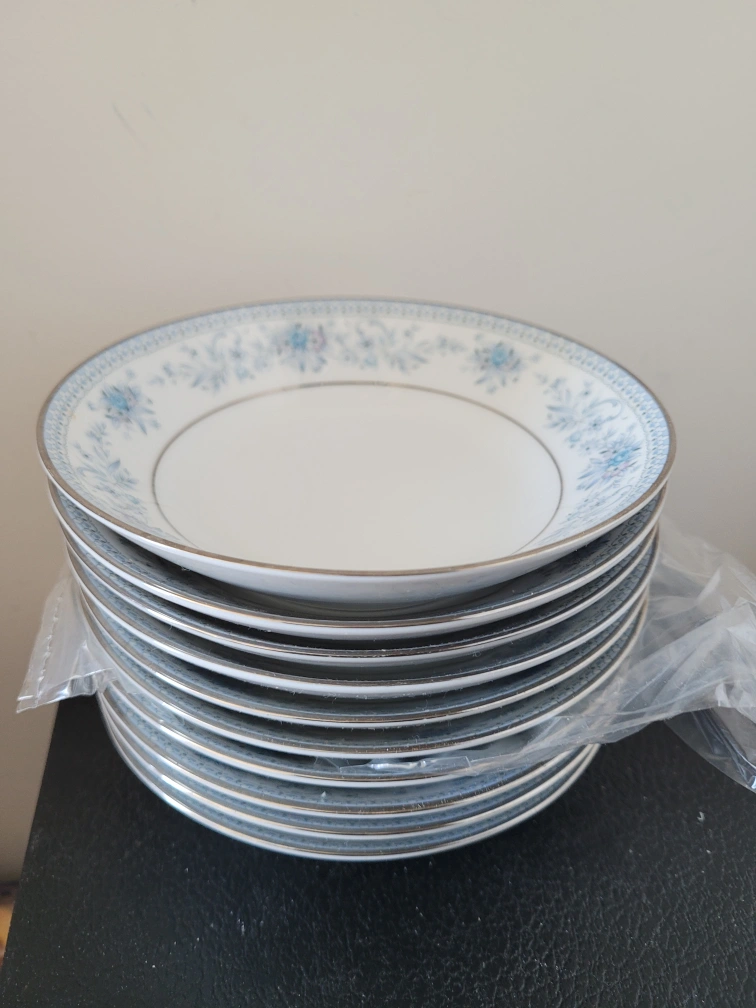 Set of ten Noritake Blue Hill dessert bowls. No chips or cracks. Fine china. Blue floral pattern. I have other blue Hill items to be posted. Noritake dinnerware is a versatile and durable choice for both everyday use and special occasions. Many appreciate its elegant design, chip resistance, and ease of cleaning, with several users noting that the dishes maintain their appearance over years of use. $3 each or $25 for all Cash or trade Looking for video games, paints, yarn, instant drinks (coffee/tea) or will check your profile