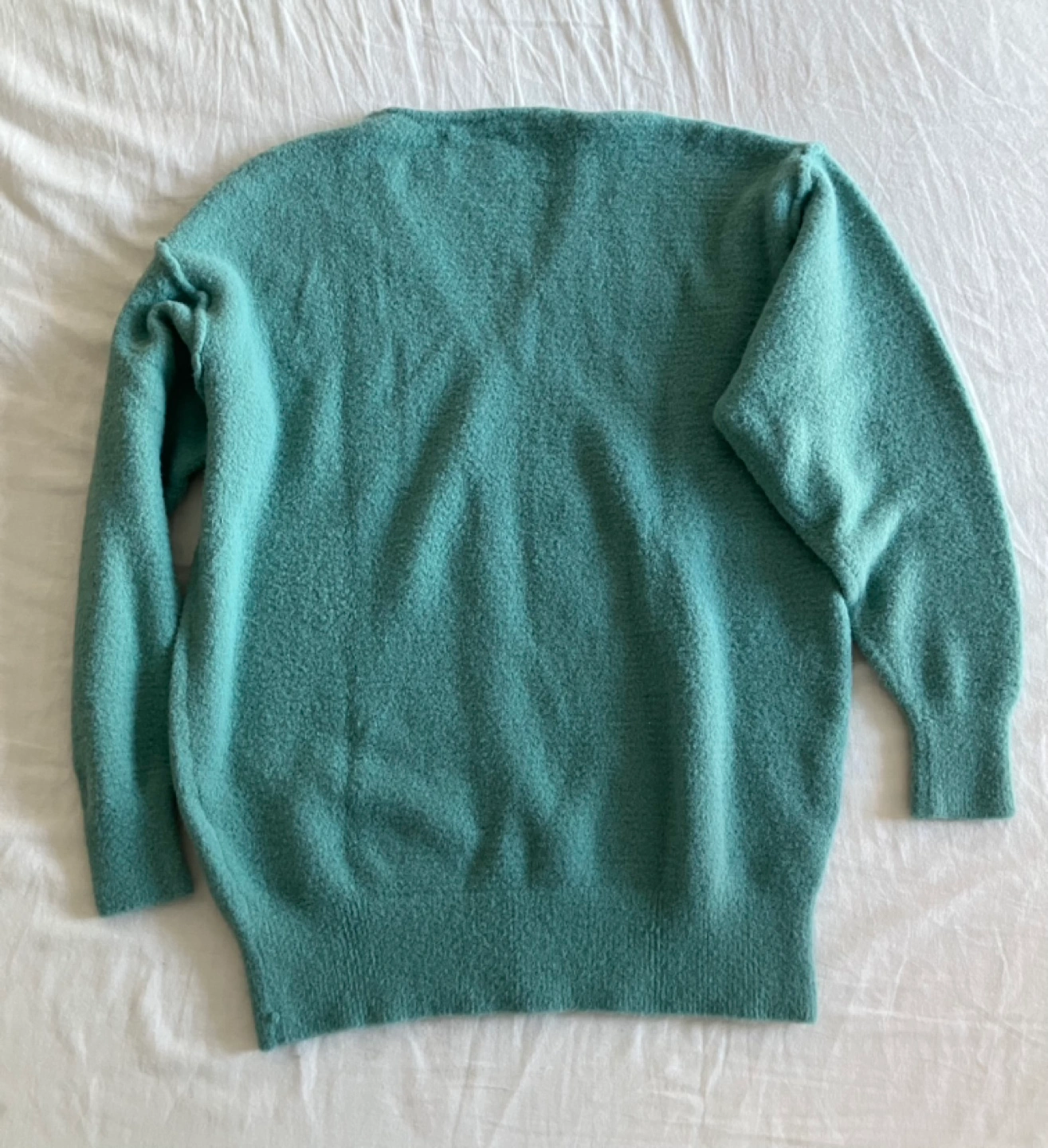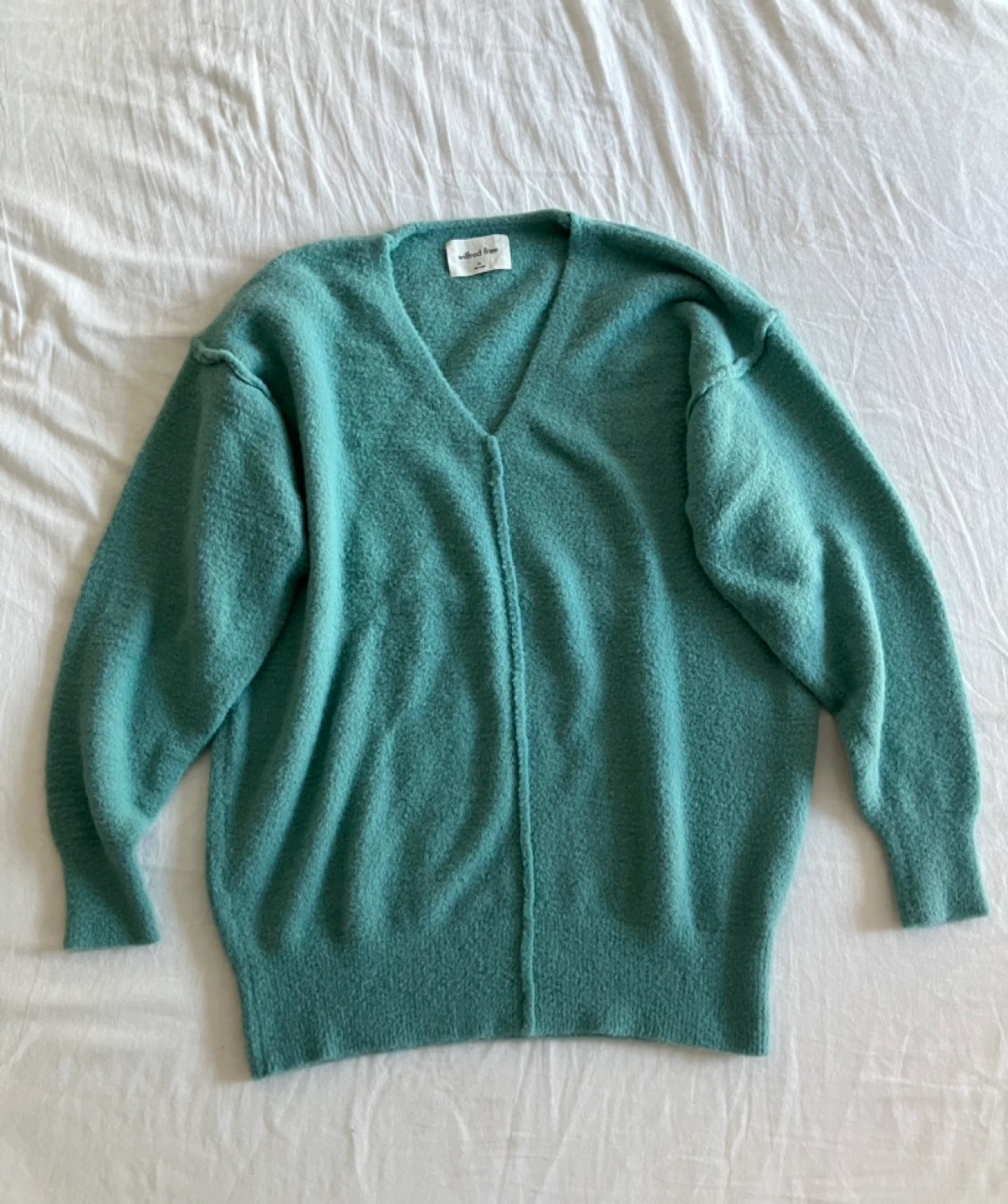 Women's teal v-neck sweater. Soft material. Relaxed fit. Long sleeves. Size XS. Used once.