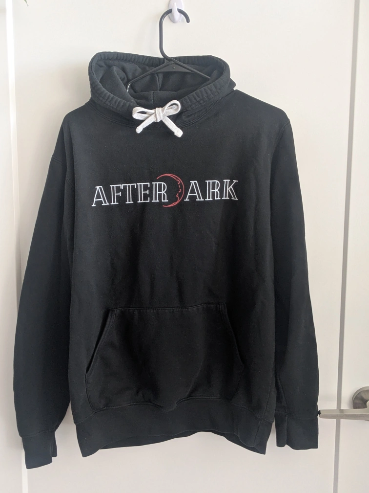 Black After Dark graphic hoodie, unisex size medium from TeamLTD Apparel. Super comfy sweater with a nice thick hood. Designed in Canada.