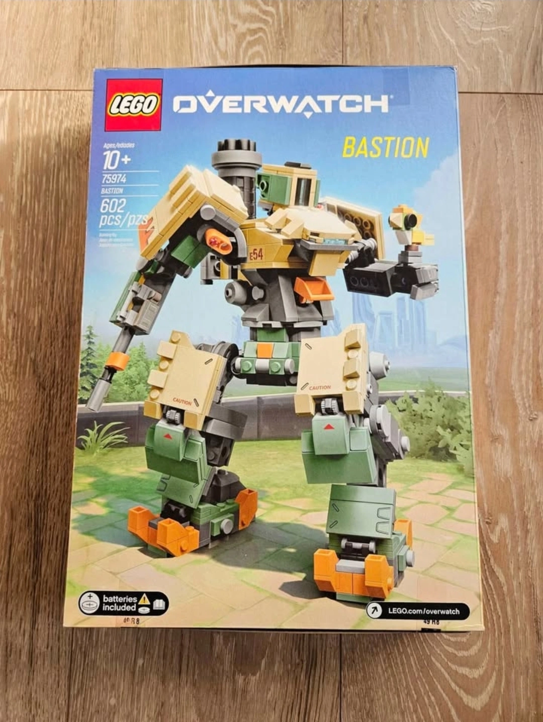 New, sealed 75974 LEGO Overwatch Bastion building kit. 602 pieces. Ages 10+. Batteries included. Collect the entire Overwatch LEGO series. This set was released in 2019. It features a buildable figure of Bastion that can be configured from recon mode to sentry mode. It was retired in September 2020 Highly sought after by collectors.