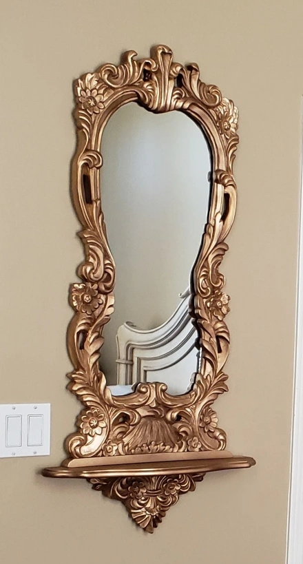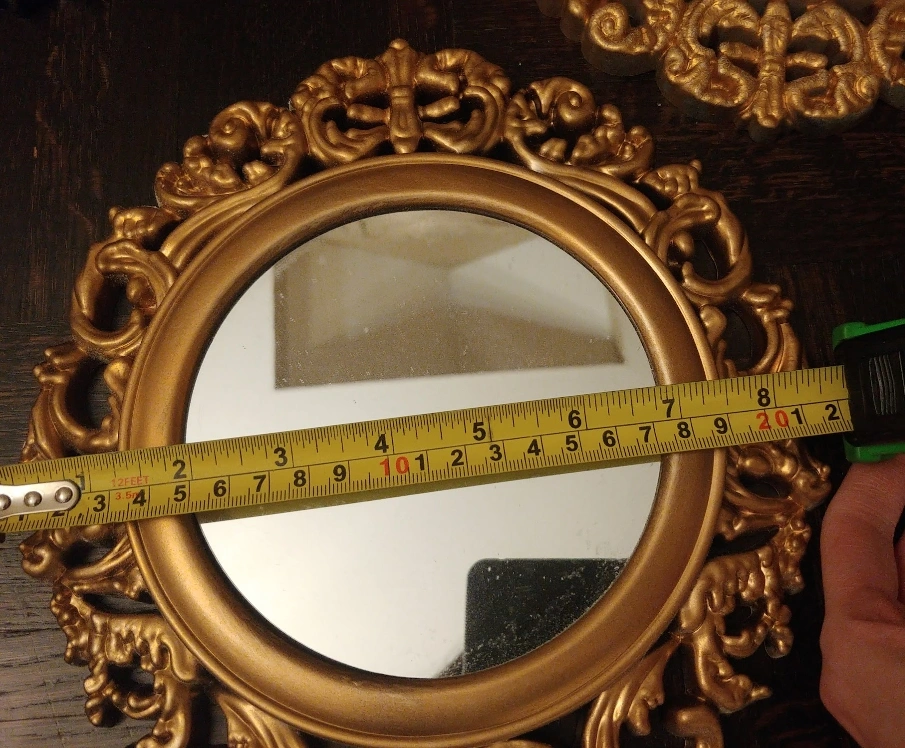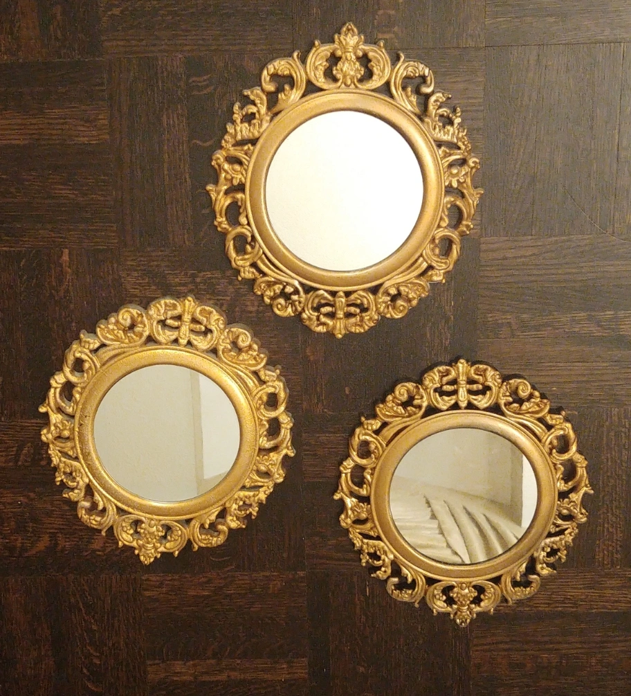 These are very beautiful pieces to add to your home decor! The large mirror is made from brass and is super sturdy, but does have some minor cracks as shown in the pictures. The small mirrors are made from plastic and all pieces have been recently painted. Please note that pick up would need to be in the Woodbridge/Vaughan area. Be sure to check out my other listings to get a bundle offer.