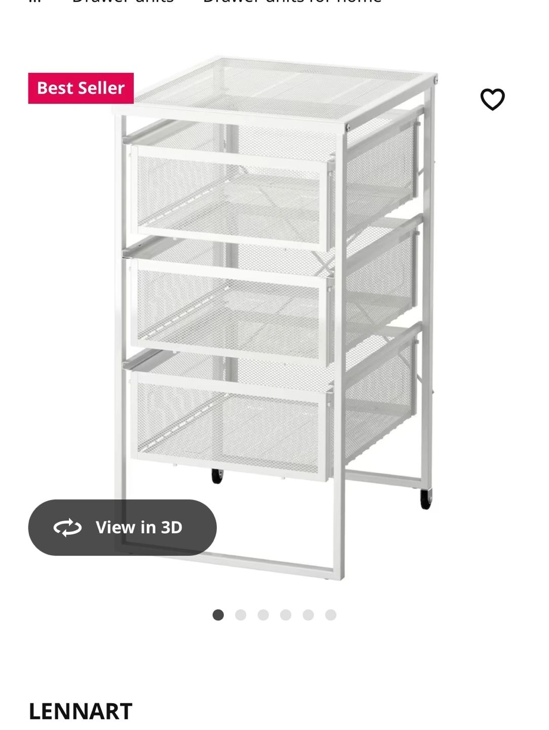 Three-drawer storage unit. White metal frame. Mesh drawers. Wheels for mobility. Great for organization. Drawers that 2 plastic screws are broken so I replaced the metal screws . It’s working perfectly and excellent condition. We are moving to our home country that’s why I am selling it. If you like to buy please contact me before march 28.