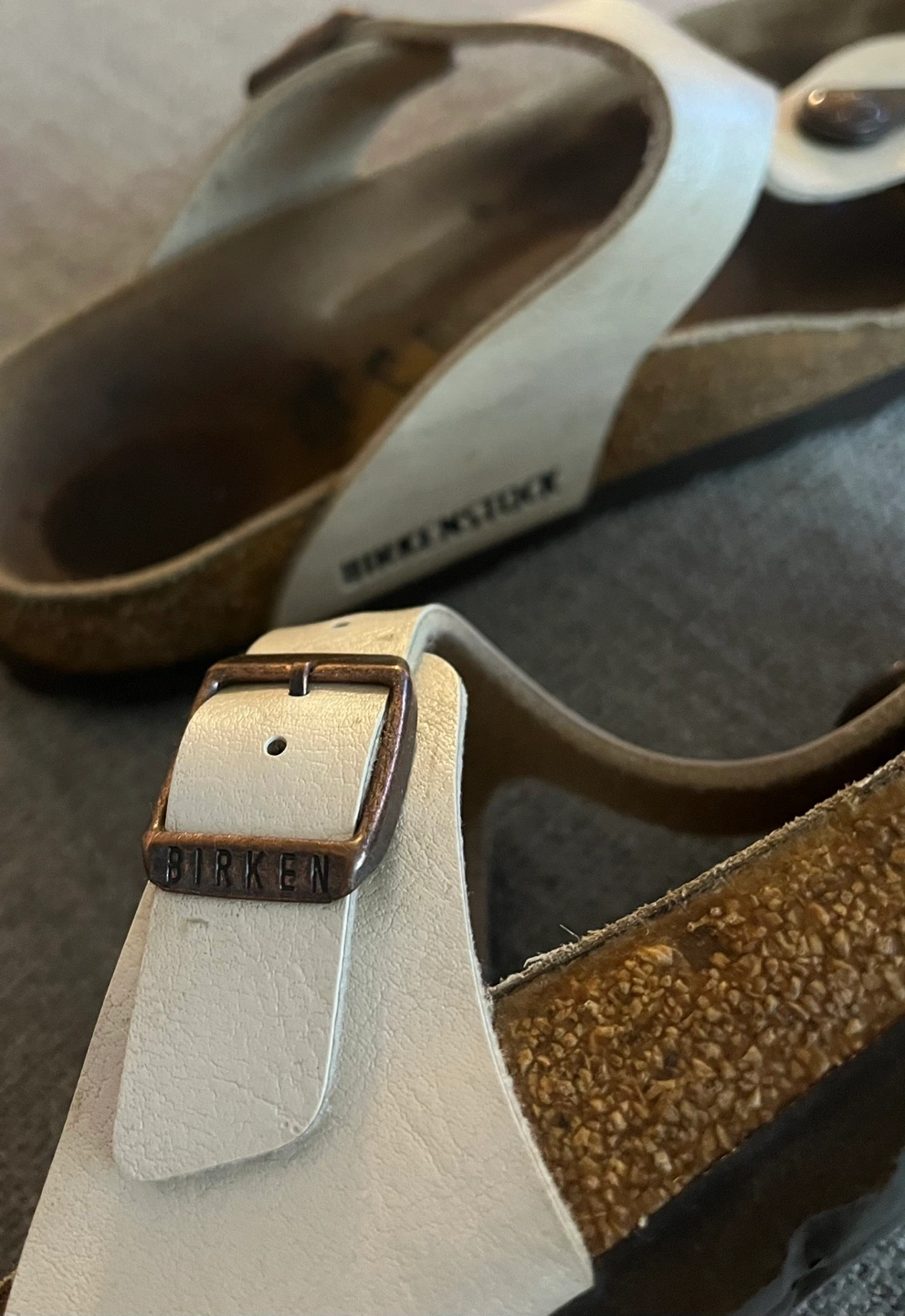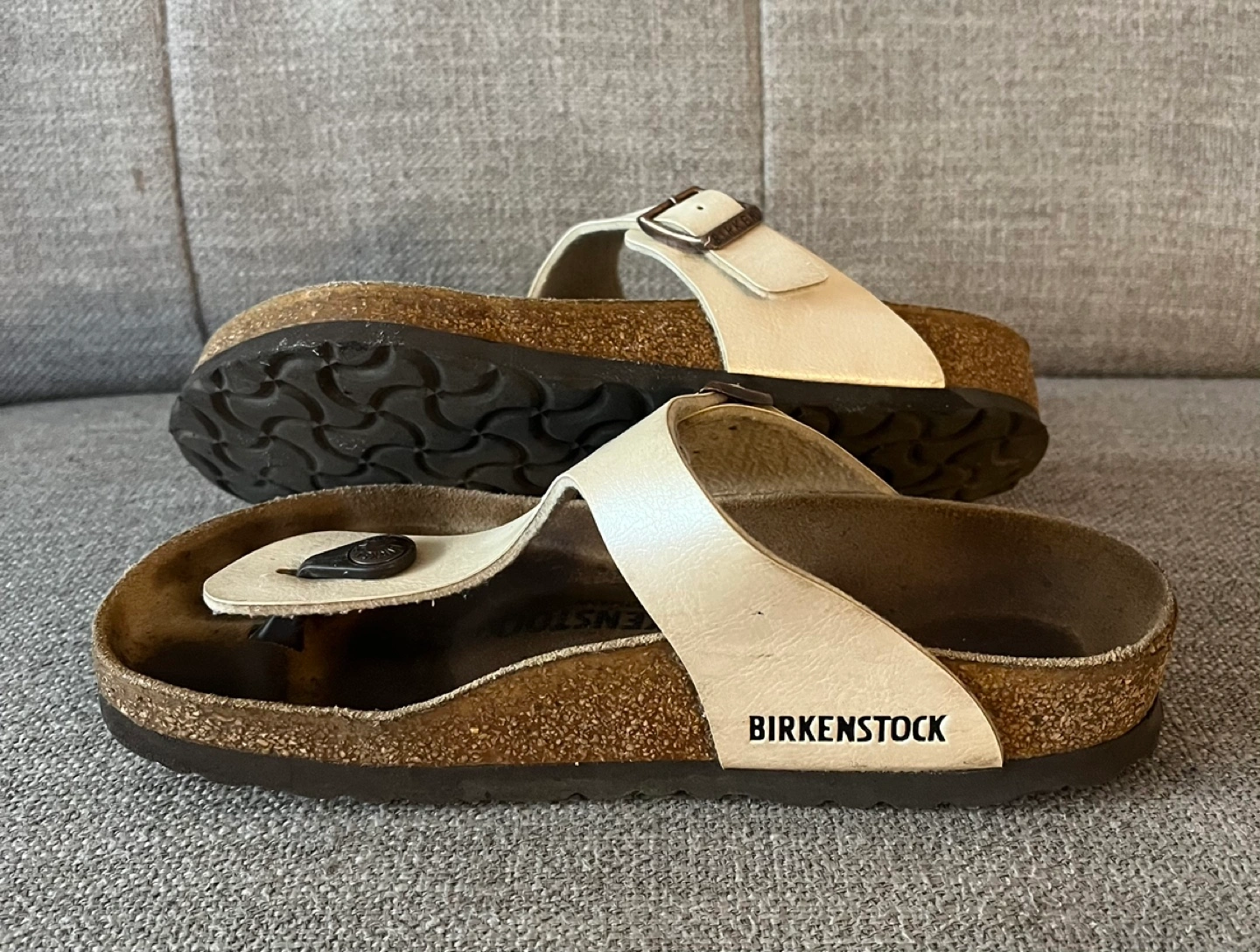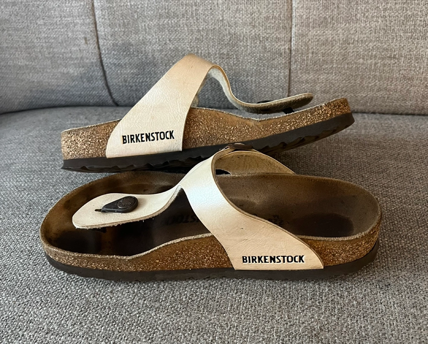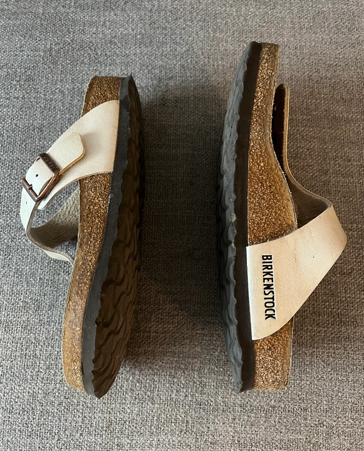 Pre-owned Birkenstock Gizeh sandals White leather upper Cork footbed Women Size 6-6.5 Pick up Bloor and Islington Etobicoke