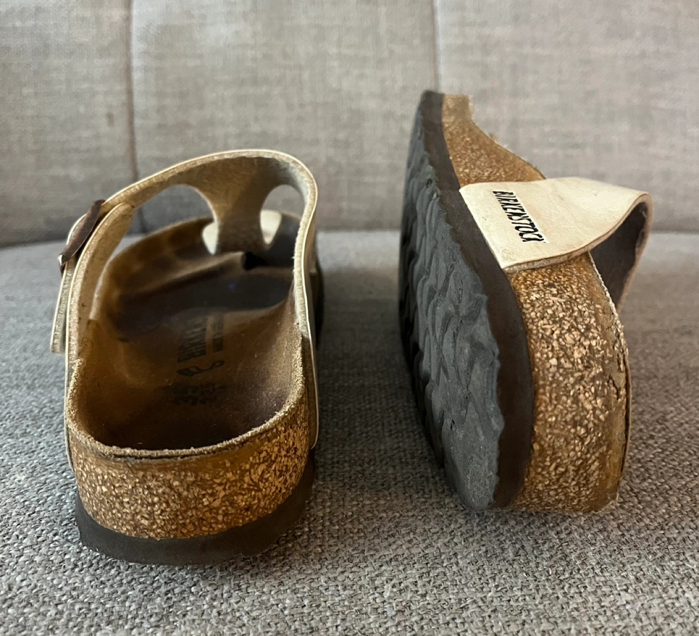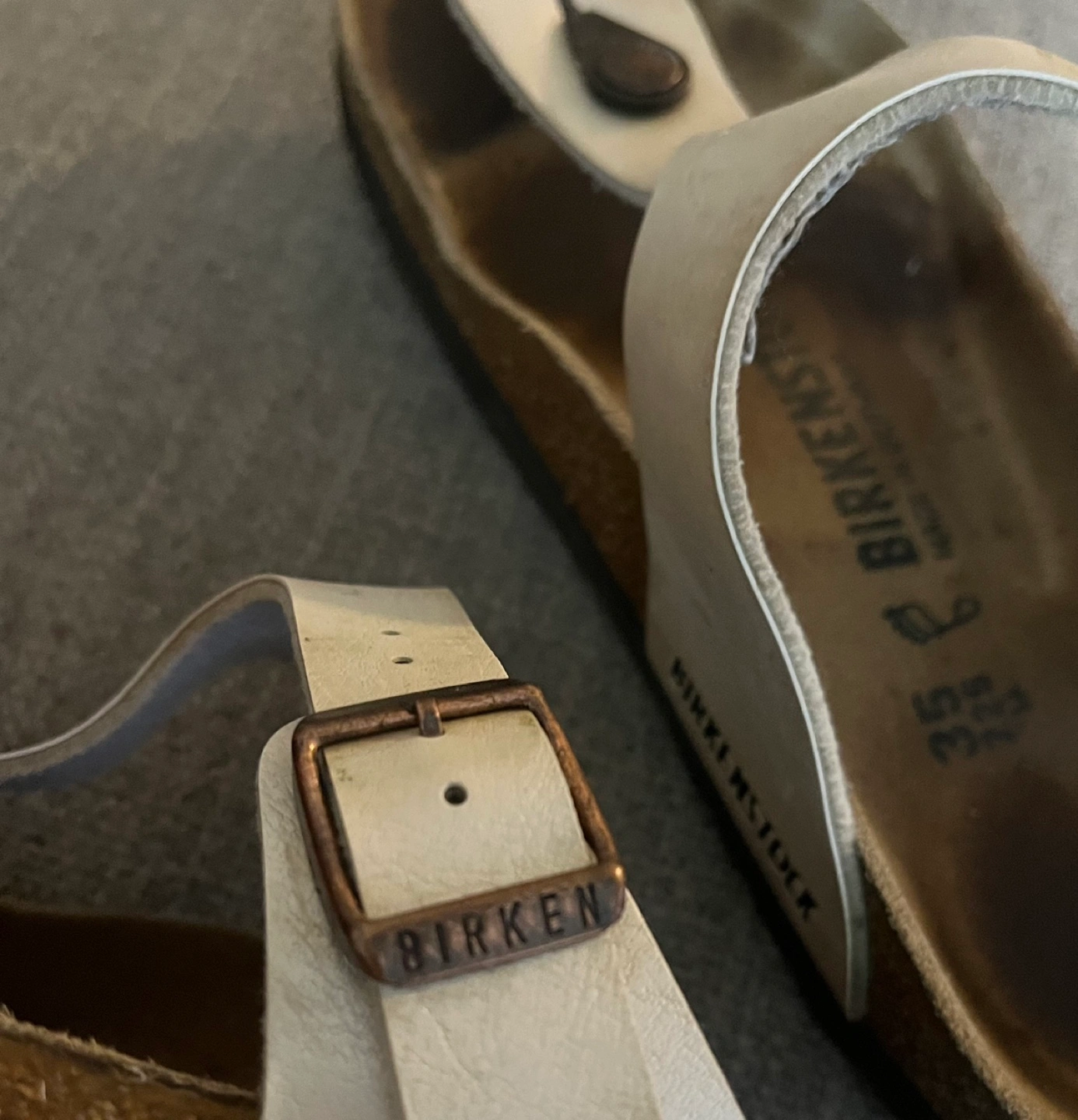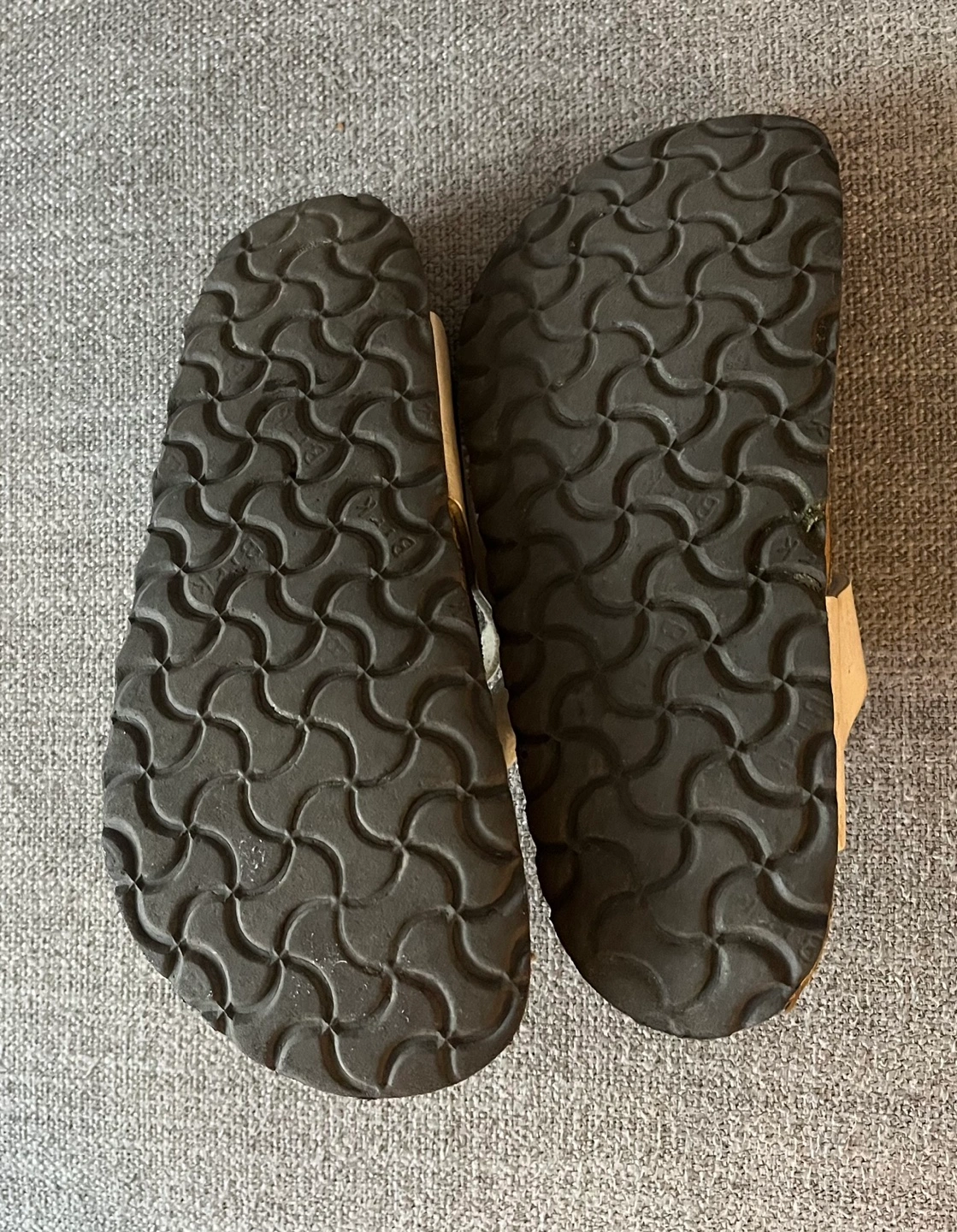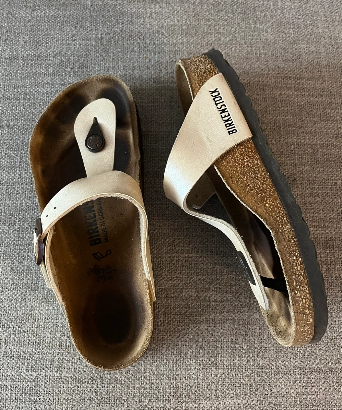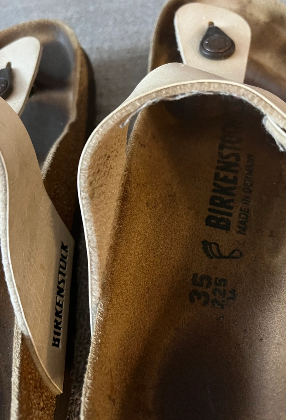 Pre-owned Birkenstock Gizeh sandals White leather upper Cork footbed Women Size 6-6.5 Pick up Bloor and Islington Etobicoke