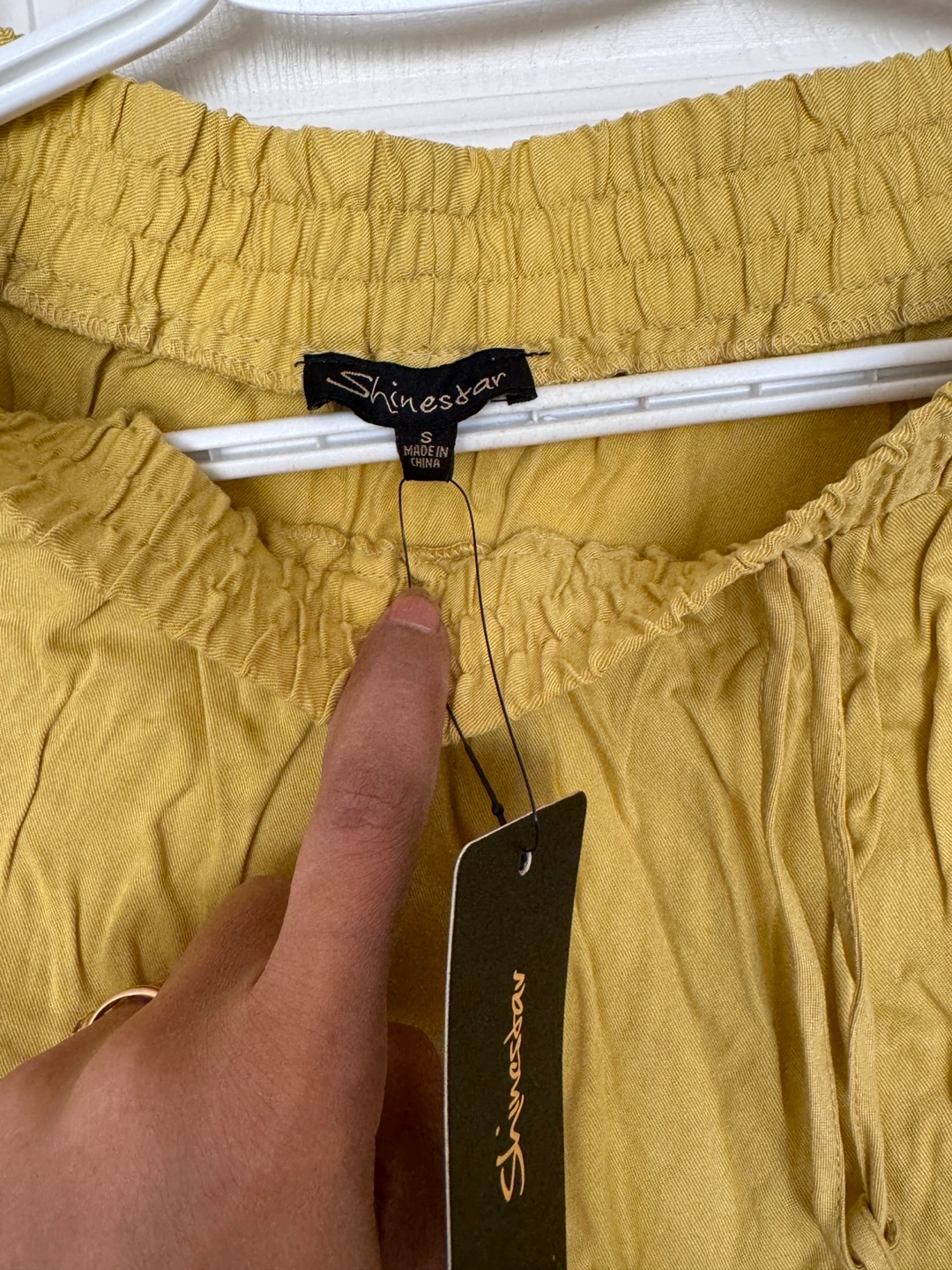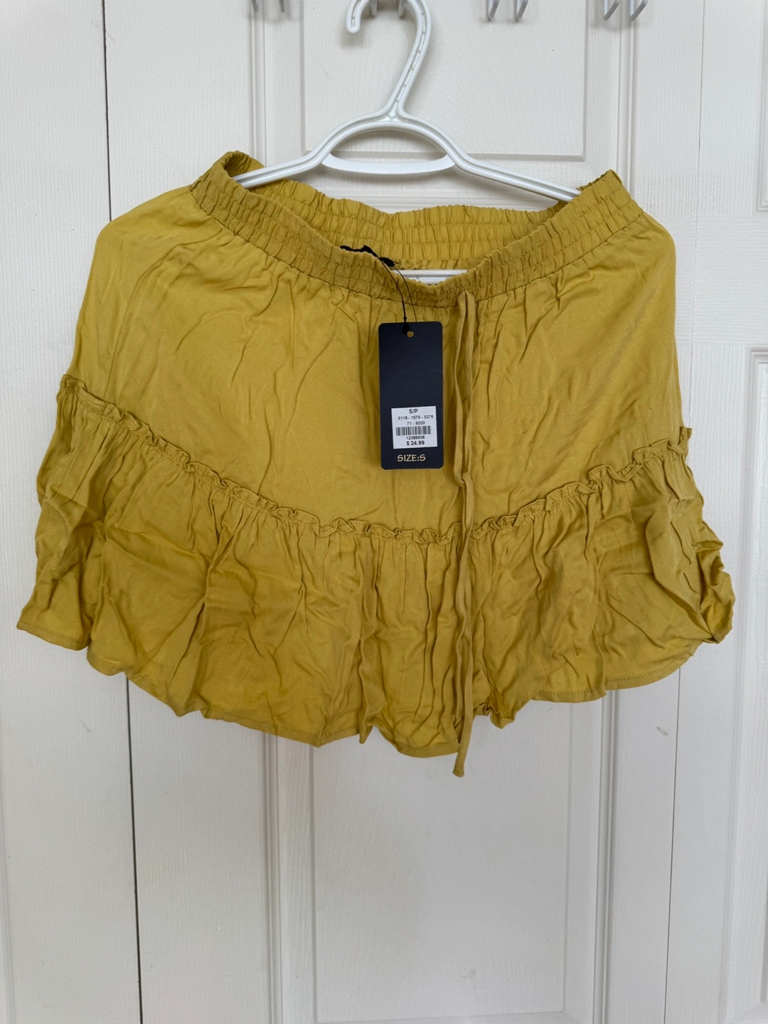 Adorable mustard yellow ruffle shorts. Size small. Elastic waistband with drawstring. New with tags. Pickup near dixie and bloor