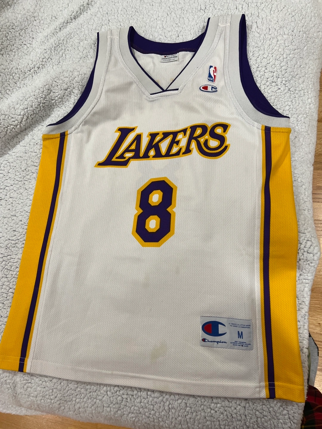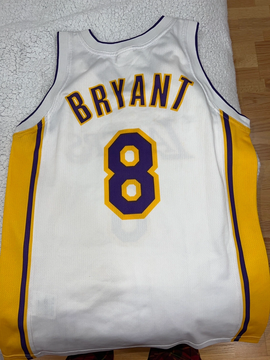 Men's size medium Los Angeles Lakers Kobe Bryant jersey. White with purple and gold accents. Champion brand. Made in Italy. Game jersey. Very rare and hard to find. It’s a collection piece. Please let me know and enjoy