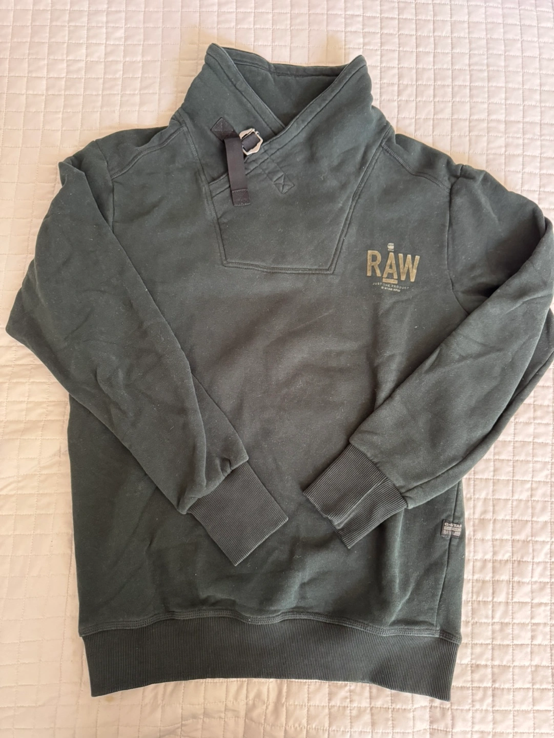 Men's black G-Star RAW sweatshirt. High neck, asymmetrical collar, and adjustable strap. Long sleeves with ribbed cuffs. 9/10 condition pick up in Woodbridge