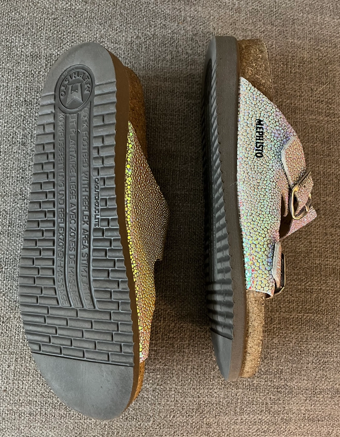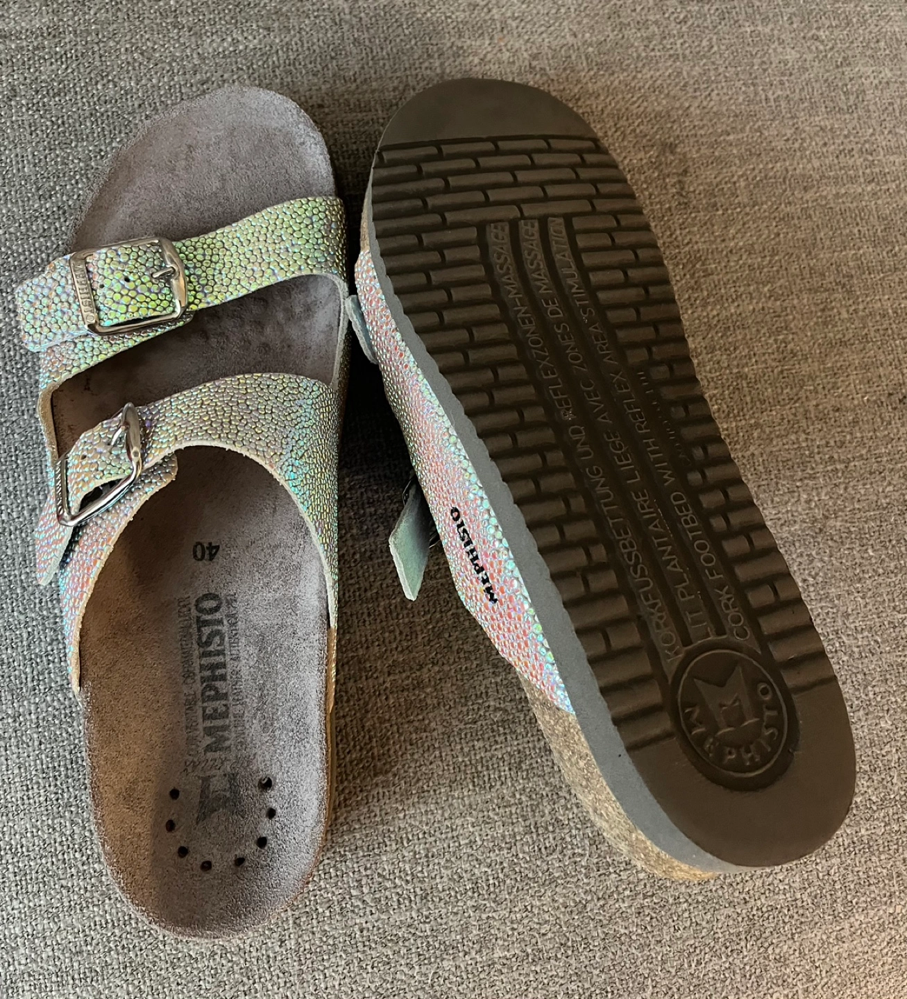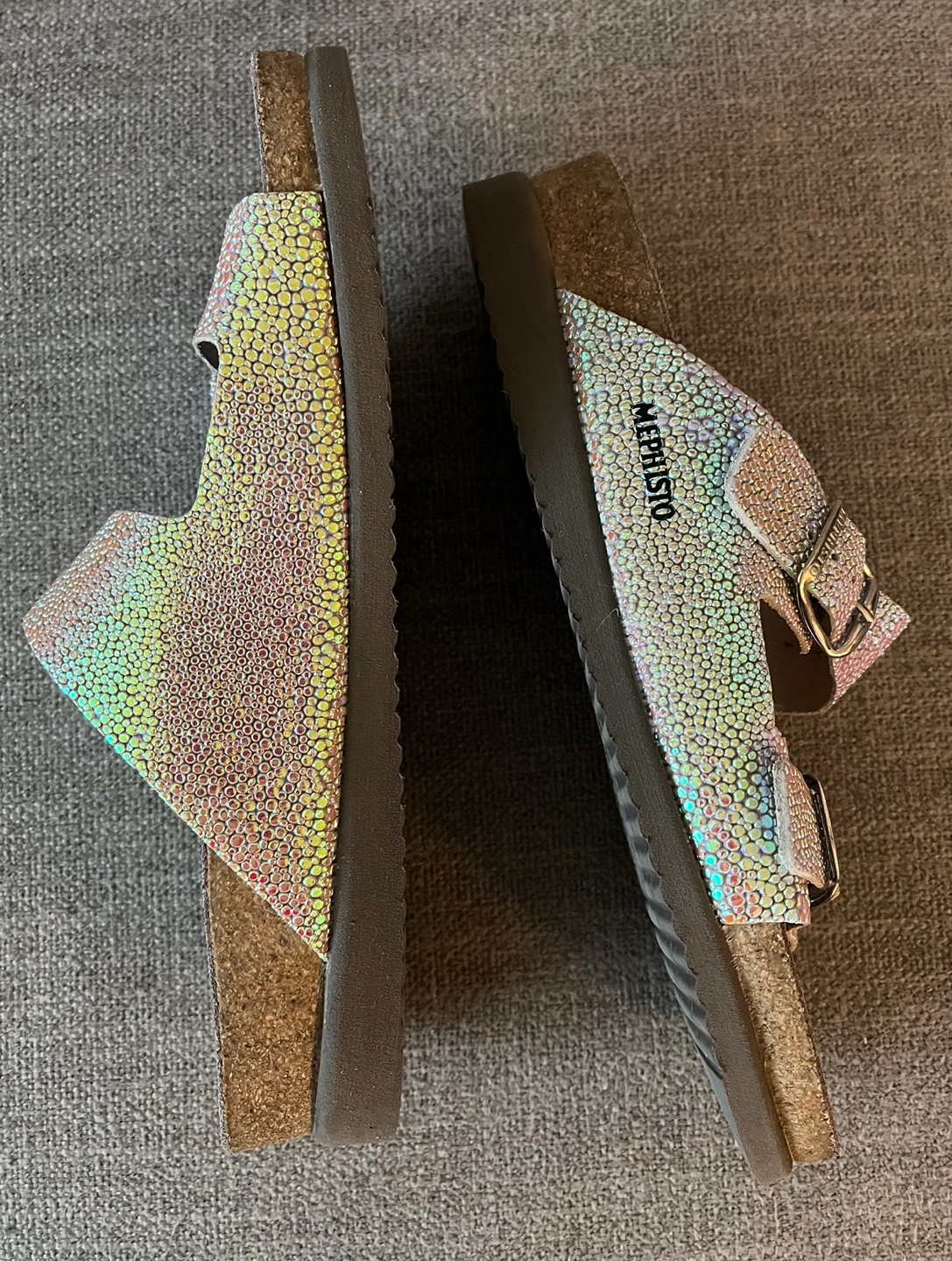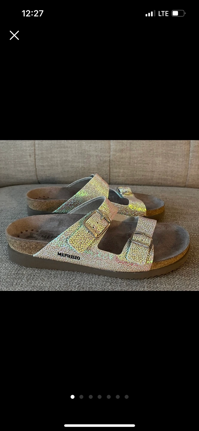 Beautiful Iridescent Mephisto Sandals Women Size 9 Cork footbed Buckle closures Excellent condition Pick up Bloor and Islington Etobicoke