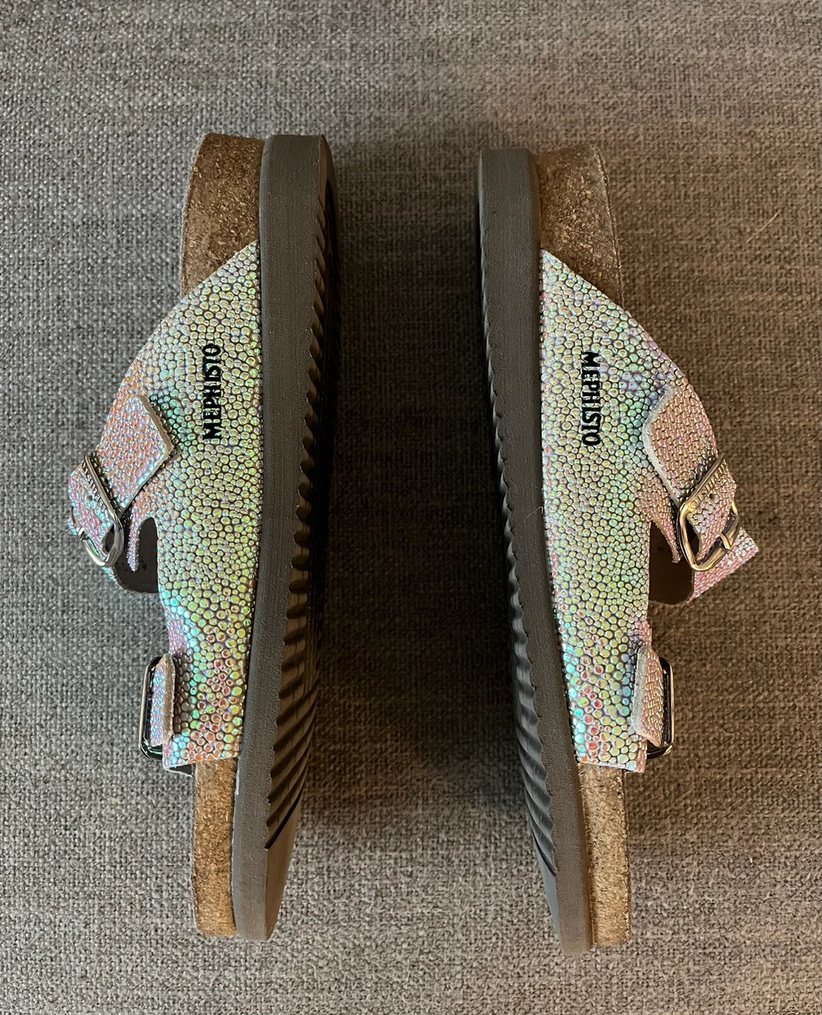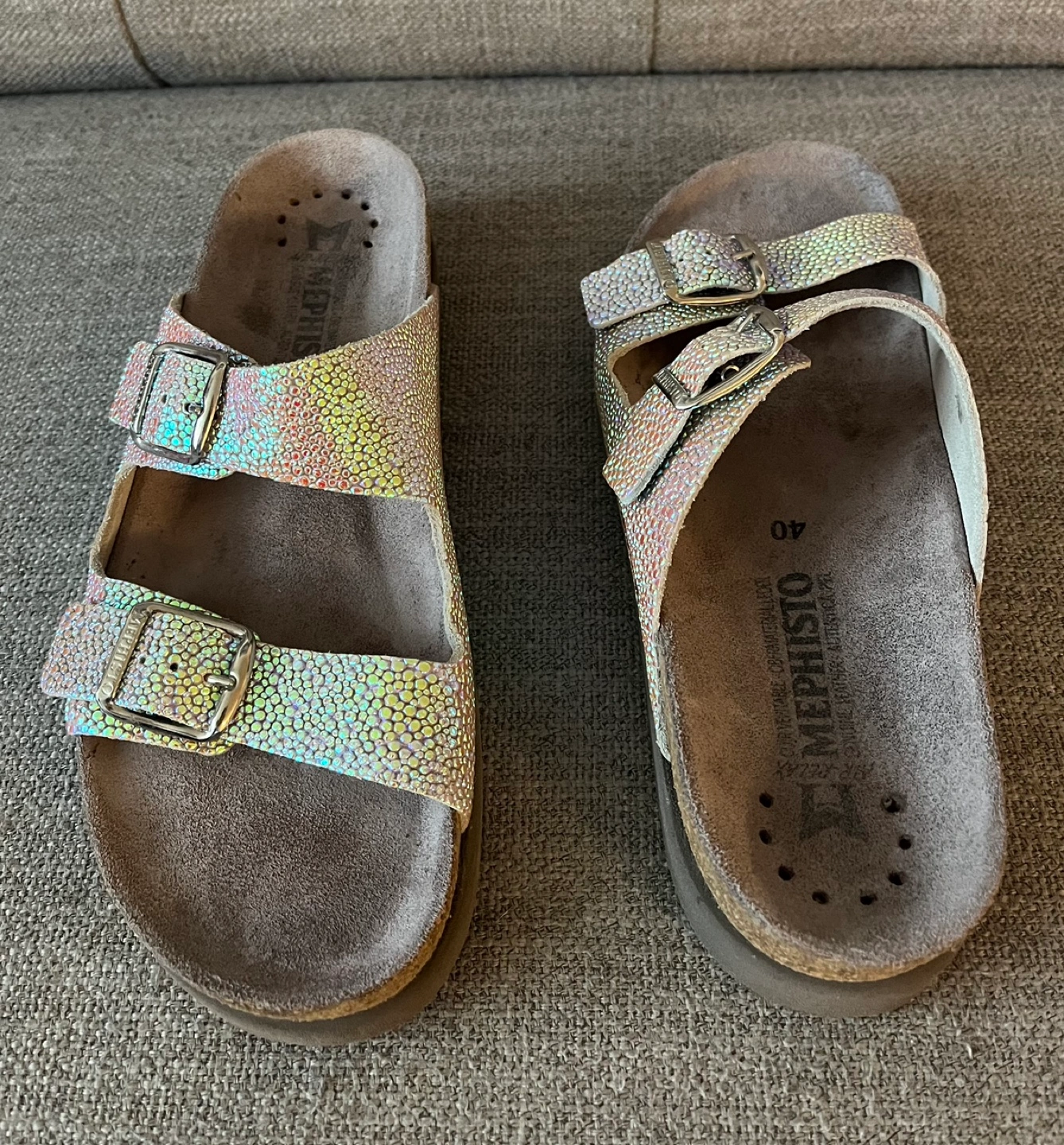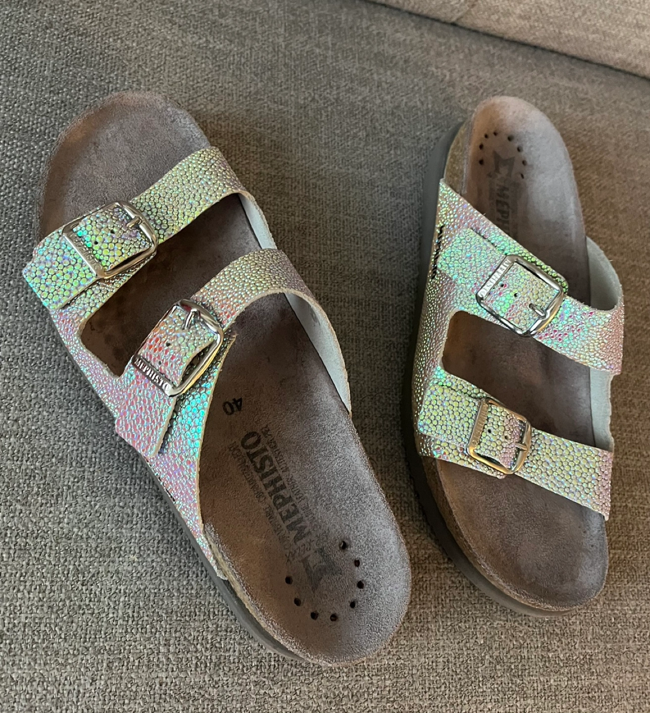 Beautiful Iridescent Mephisto Sandals Women Size 9 Cork footbed Buckle closures Excellent condition Pick up Bloor and Islington Etobicoke