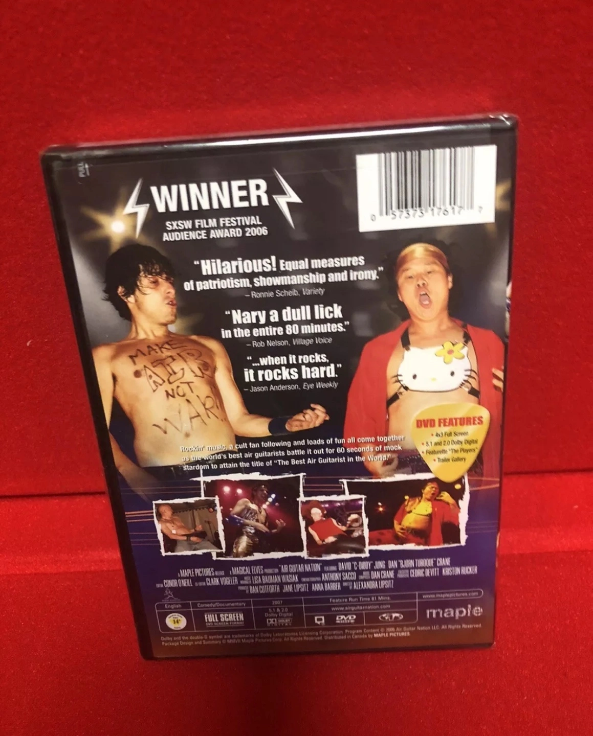 New Air Guitar Nation DVD DVD movie. Features Lords of Rockin' Tracks from: Brad Sucks, Cheap Trick, The Rivets, Extreme, Sonic Youth, The Wild Wombats. SXSW Film Festival Audience Award Winner 2006. $5 Pick up Victoria Park and O’Connor area