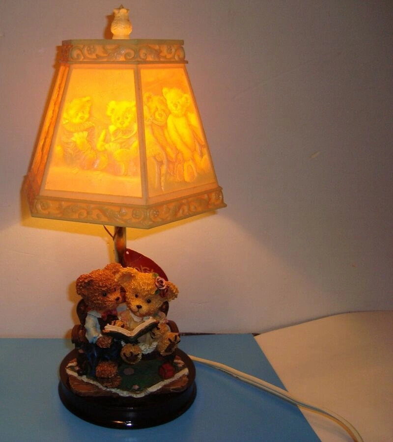 Adorable hand crafted teddy bear lamp 🧸🐻. Hand-painted polyresin base. Colourful lamp shade glows from within. Classic teddy bear design. Exquisitely detailed shade, both on and off. The 1st 2 pics are for reference as I did not want to take the lamp out of the box. It is brand New and unused. However the box that it's secured in looks used. Rest assured brand new.