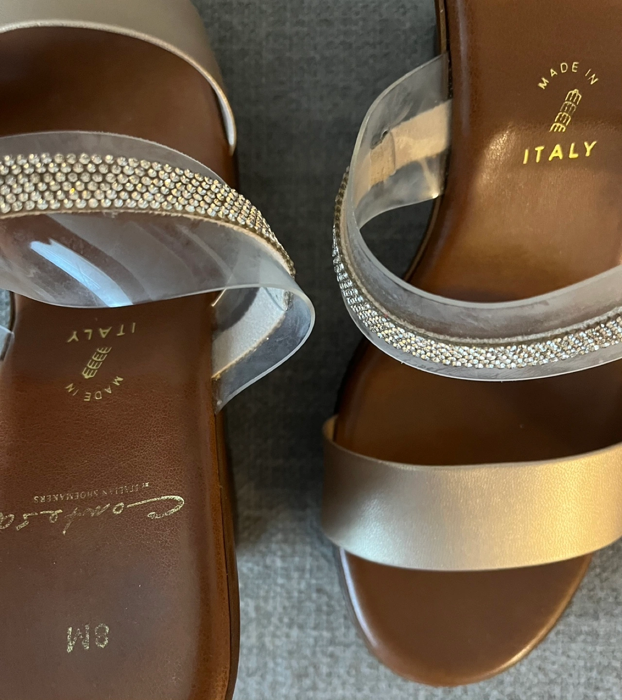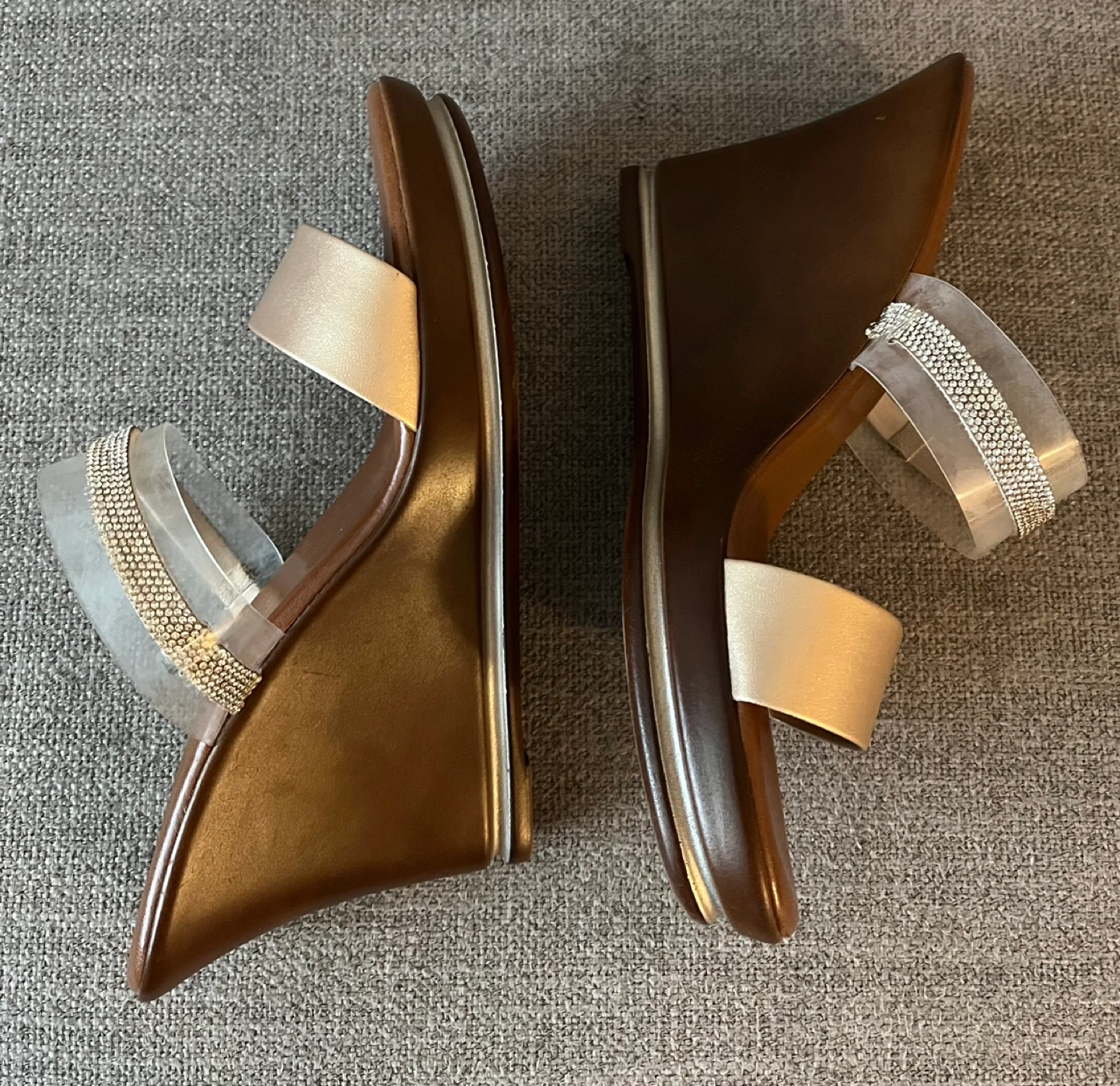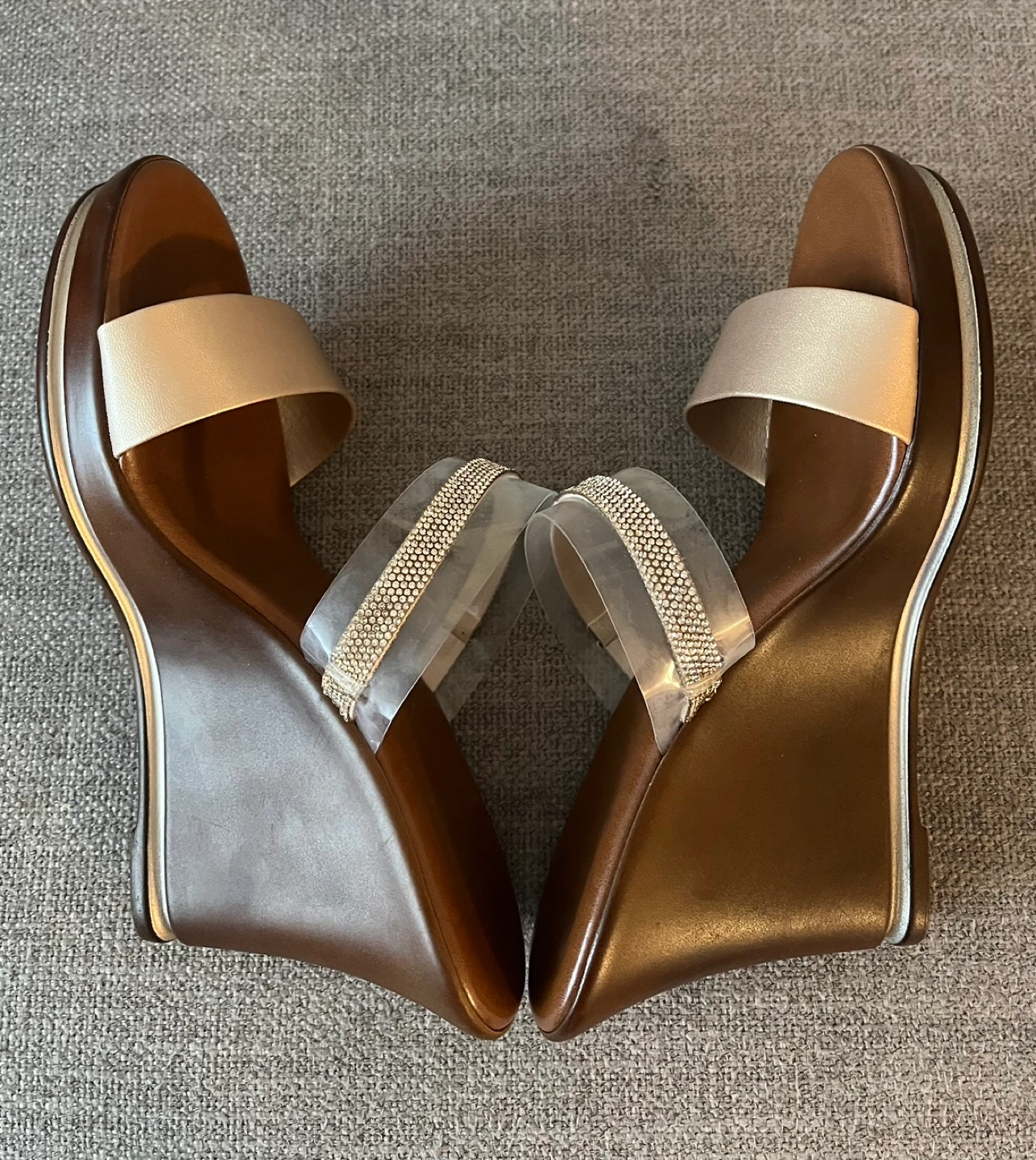 Beautiful Contesa wedge sandals Women Size 8M Made in Italy Clear straps with rhinestone detailing Excellent condition Pick up Bloor and Islington Etobicoke