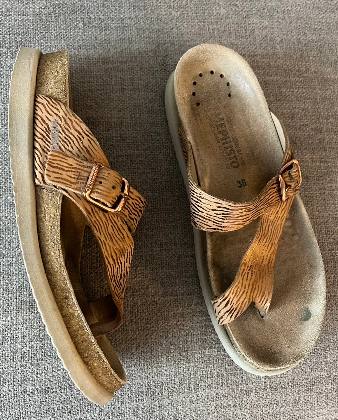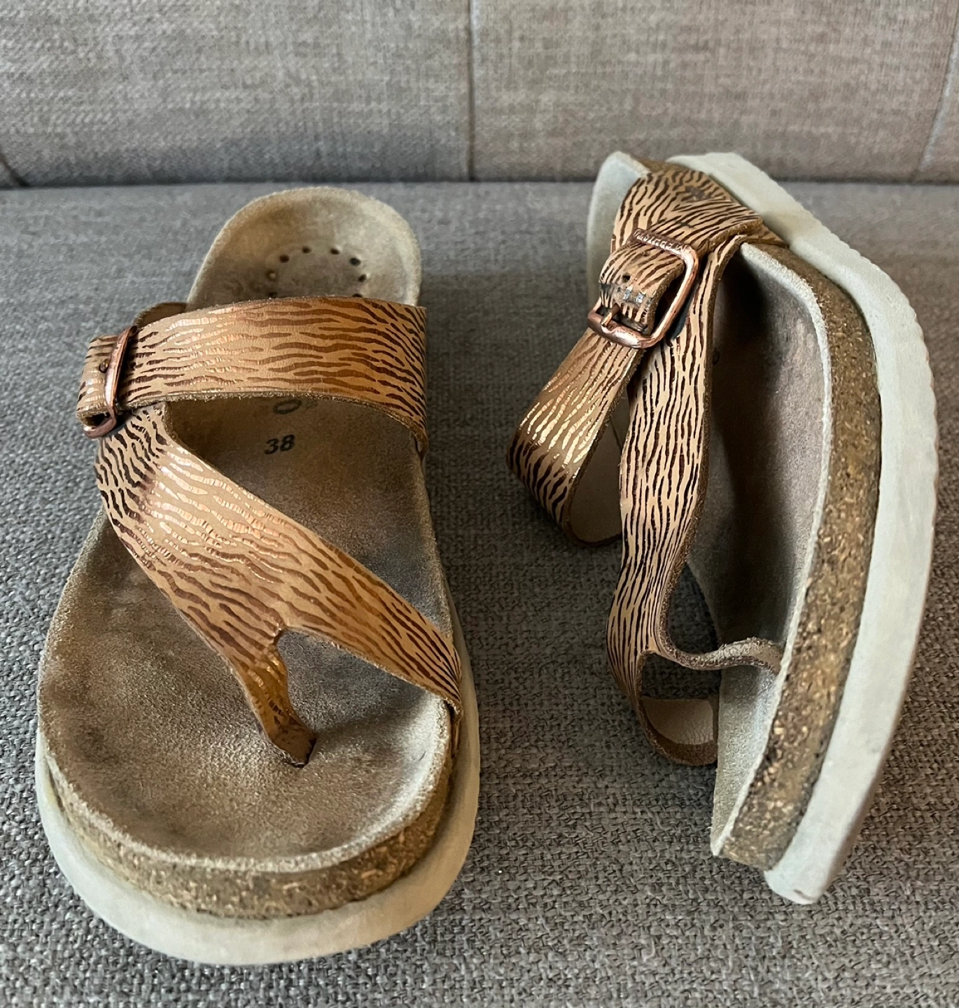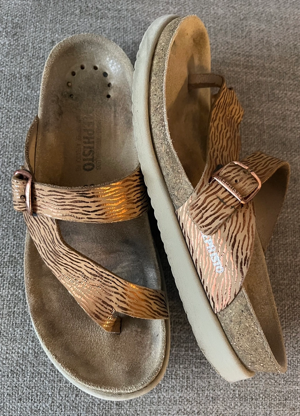 Mephisto Bronze-toned leather sandals Cork platform; Adjustable buckle Women Size 8 Pick up Bloor and Islington Etobicoke